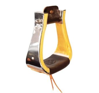 The 2" Monel Stirrups are crafted from durable hardwood and encased in a polished stainless-steel exterior for exceptional strength and longevity. The 2" depth provides secure, balanced foot placement, while the dark laced tread enhances traction and stability in the saddle. A top stirrup leather protector helps prevent premature wear on your saddle’s leathers, ensuring lasting performance. Combining durability and function, these stirrups deliver dependable support ride after ride.