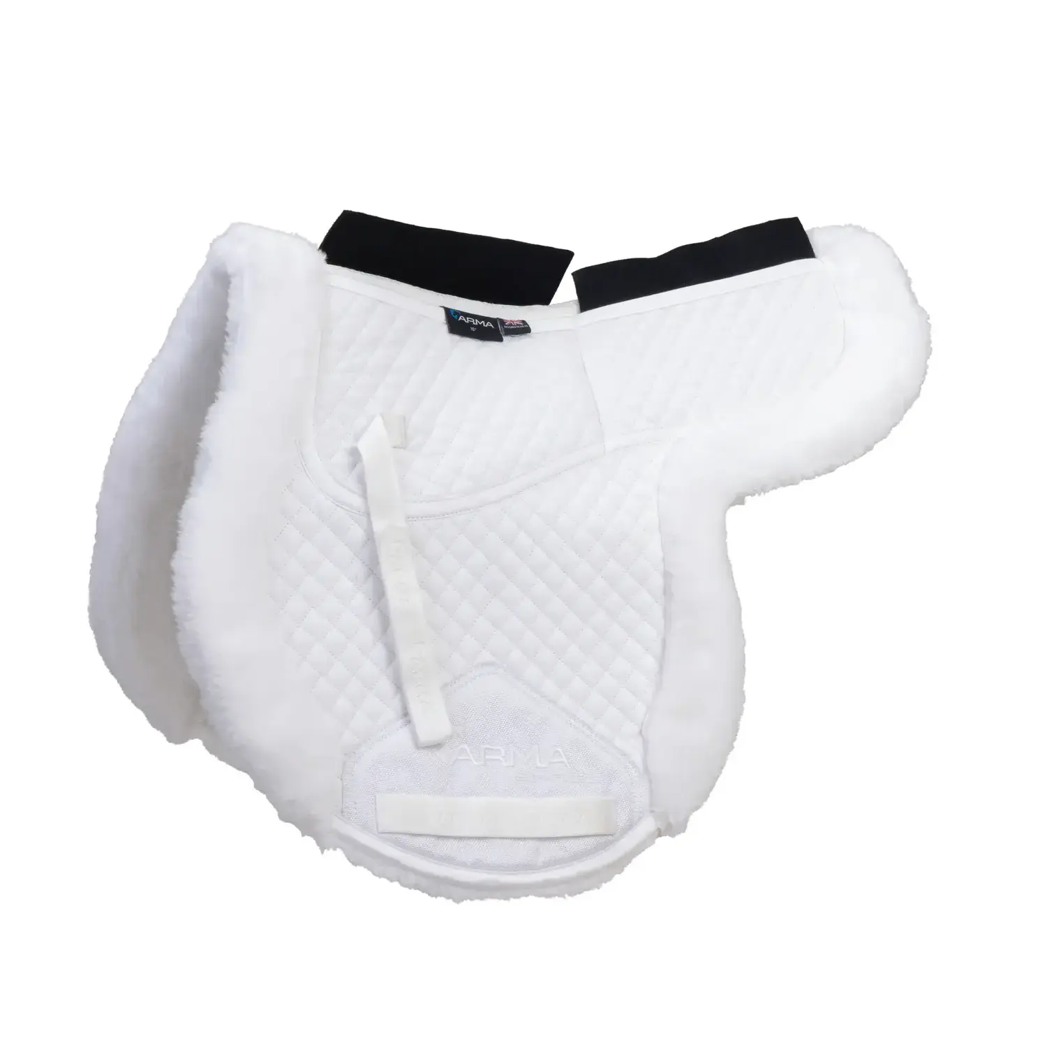 Accommodate a horse's changing shape to maintain good saddle fit. Quilted on the outside and lined on the underside for comfort. The ARMA SupaFleece Rimmed Shaped Pad with Corrective Shims features four pockets with shim inserts. Varying degrees of adjustment can be accommodated using the low compression shim inserts which are supplied as three sets.