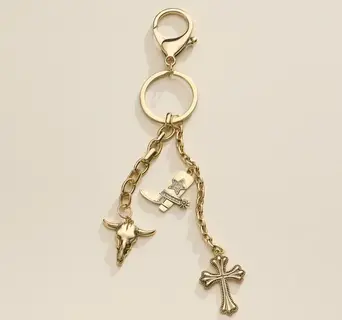 Western Bag Charm Keychain with Boot, Skull, and Cross