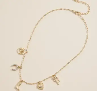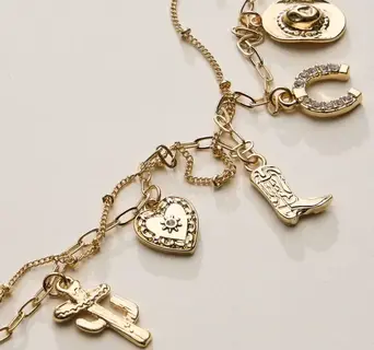 Western Charm Necklace with Horseshoe, Boot, Heart & Cactus