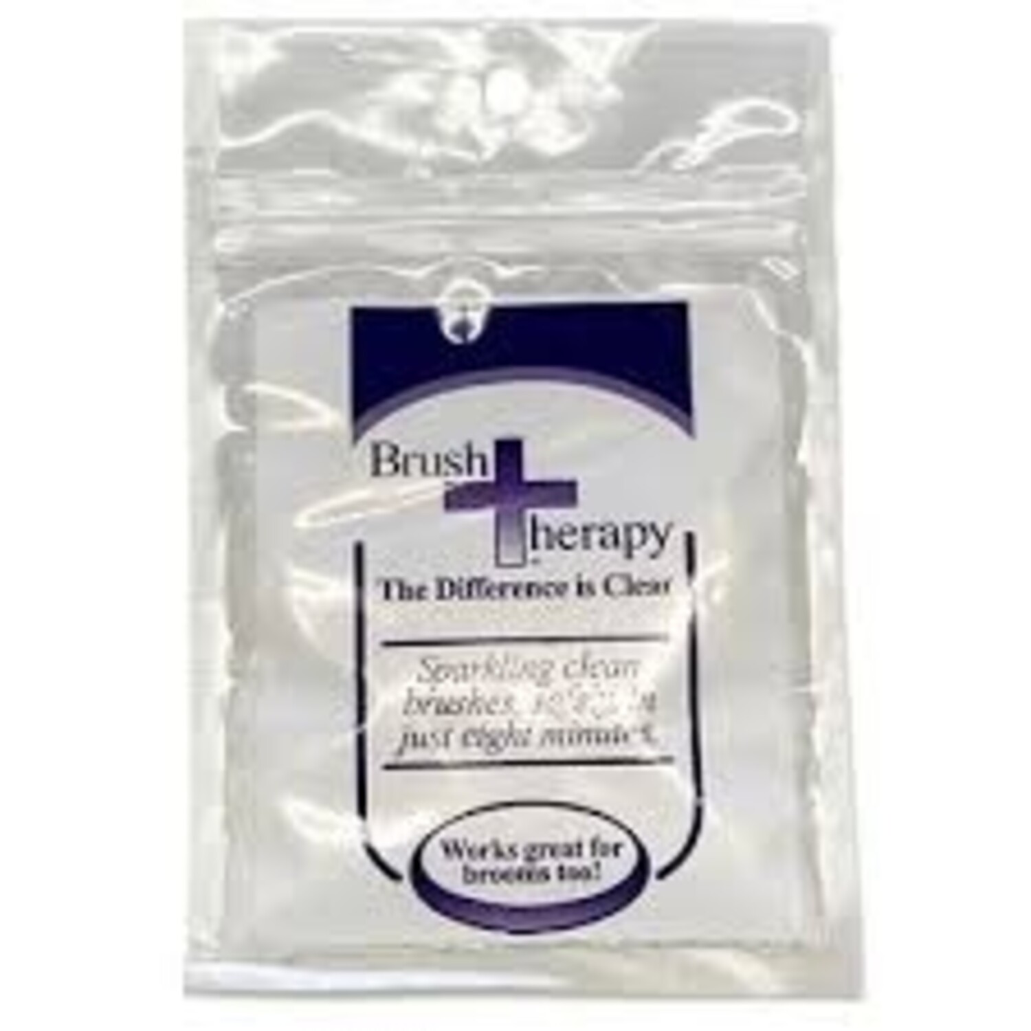 Citrus-scented effervescent powder cleans away dirt, debris, bacteria, and fungi from brushes or brooms