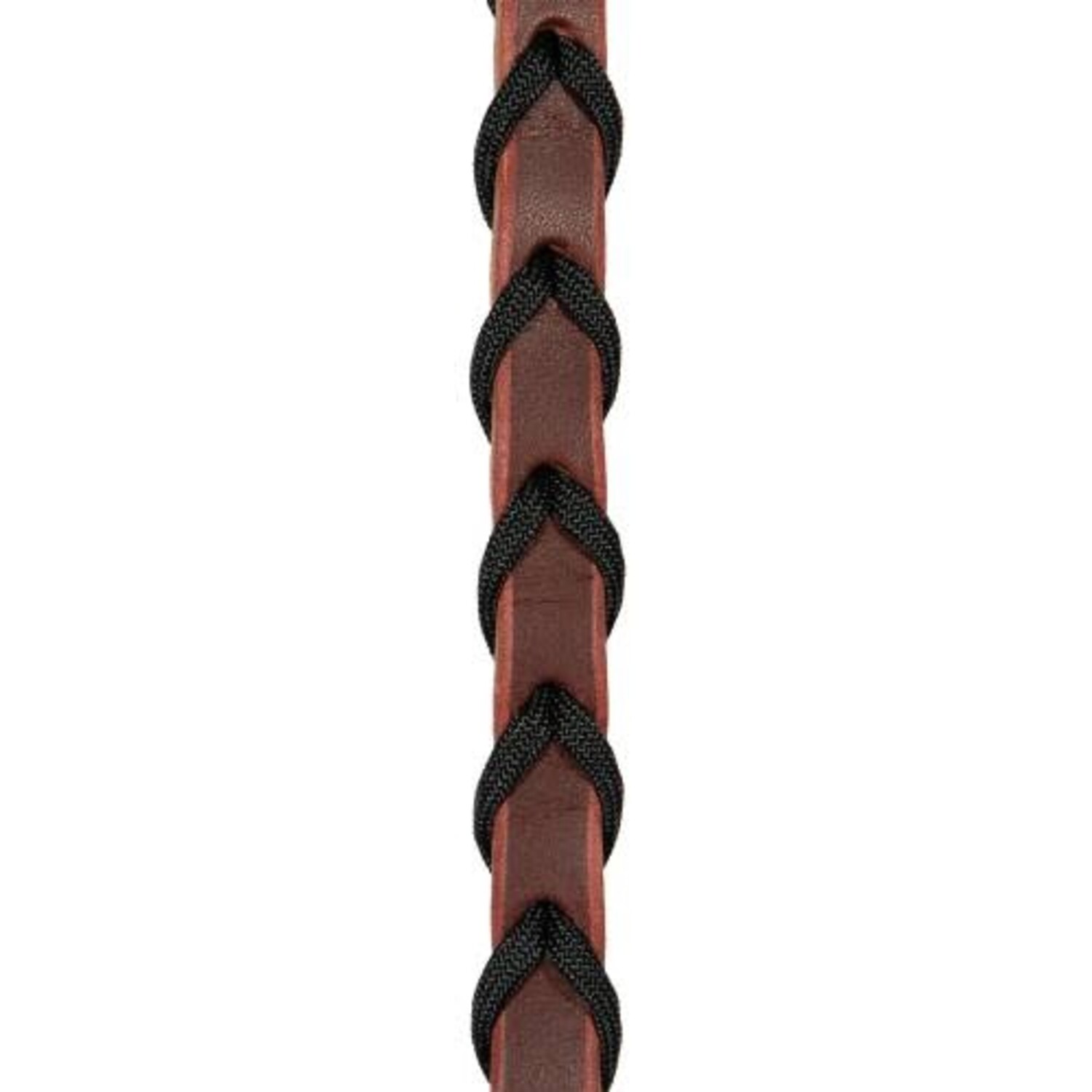 ½” width for smaller hands, paracord lacing for better grip in all conditions. Durable, strong, water-resistant and flexible burgundy latigo leather is comfortable in the hand. One piece style prevents dropped reins.