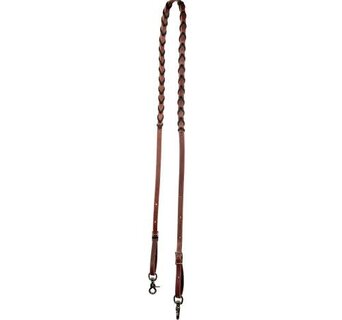 ½” width for smaller hands, paracord lacing for better grip in all conditions. Durable, strong, water-resistant and flexible burgundy latigo leather is comfortable in the hand. One piece style prevents dropped reins.