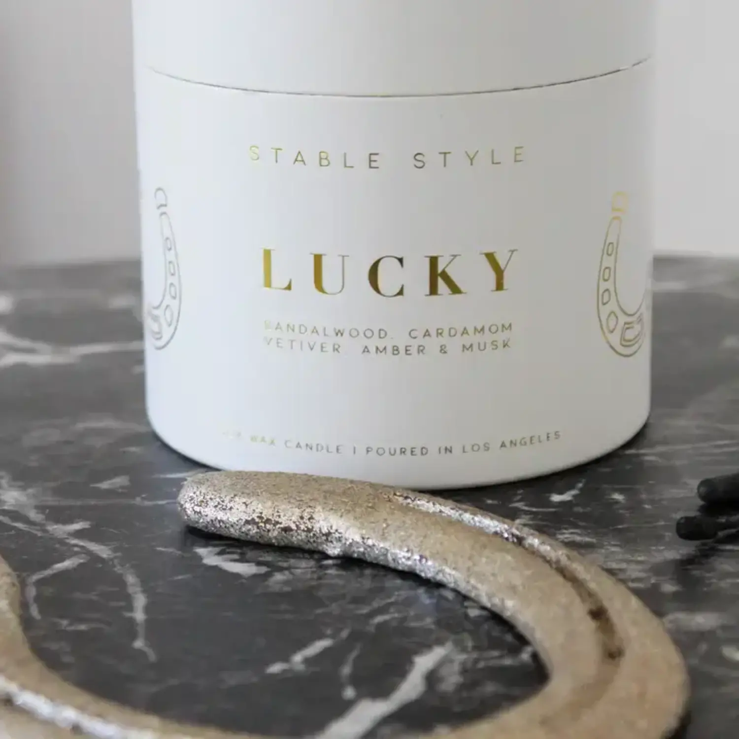 10 ounces, 60+ hour burn time Introducing the Icons Collection by Stable Style—soy wax candles hand-poured into clear glass vessels with graceful rounded bases and accented by gold details.