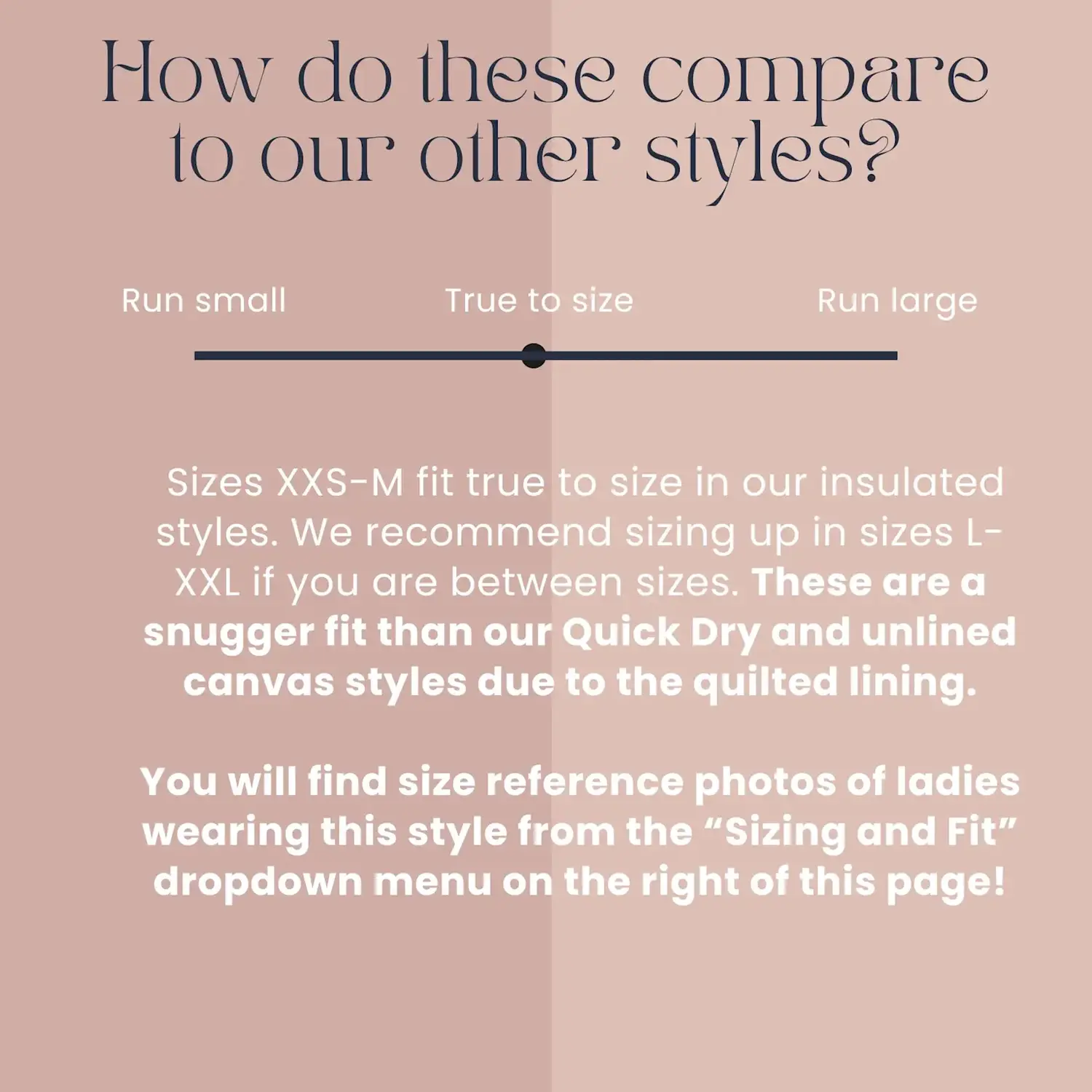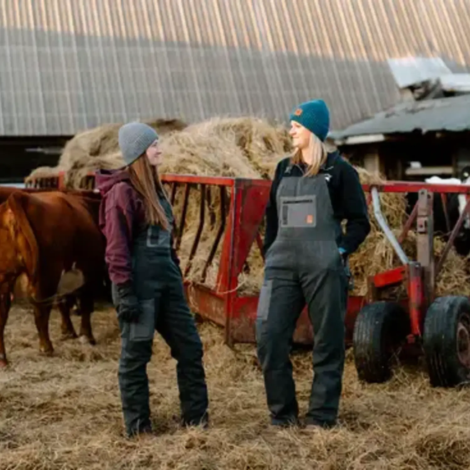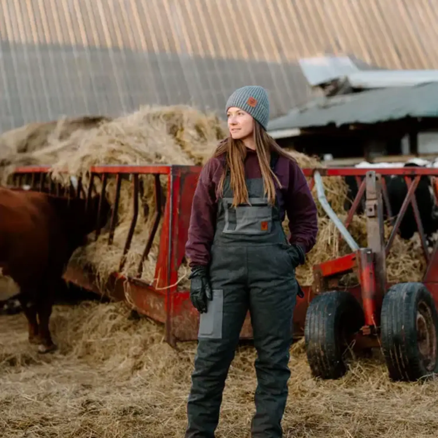 Flattering, durable, cozy and warm. Fitted to highlight your waist and allow room for your hips, with seams in all the right places. Featuring a 140 gram quilted polyester lining to keep you warm without too much bulkiness. Features: thigh cell phone pocket, two bum pockets, zippered chest pocket with syringe holders, pen pocket, front pockets, knife pocket, hammer loop, and reinforced crotch gusset. Heavy duty side zips for ease of putting on. Elastic straps for improved mobility and high grade buckles that won't come undone while working.