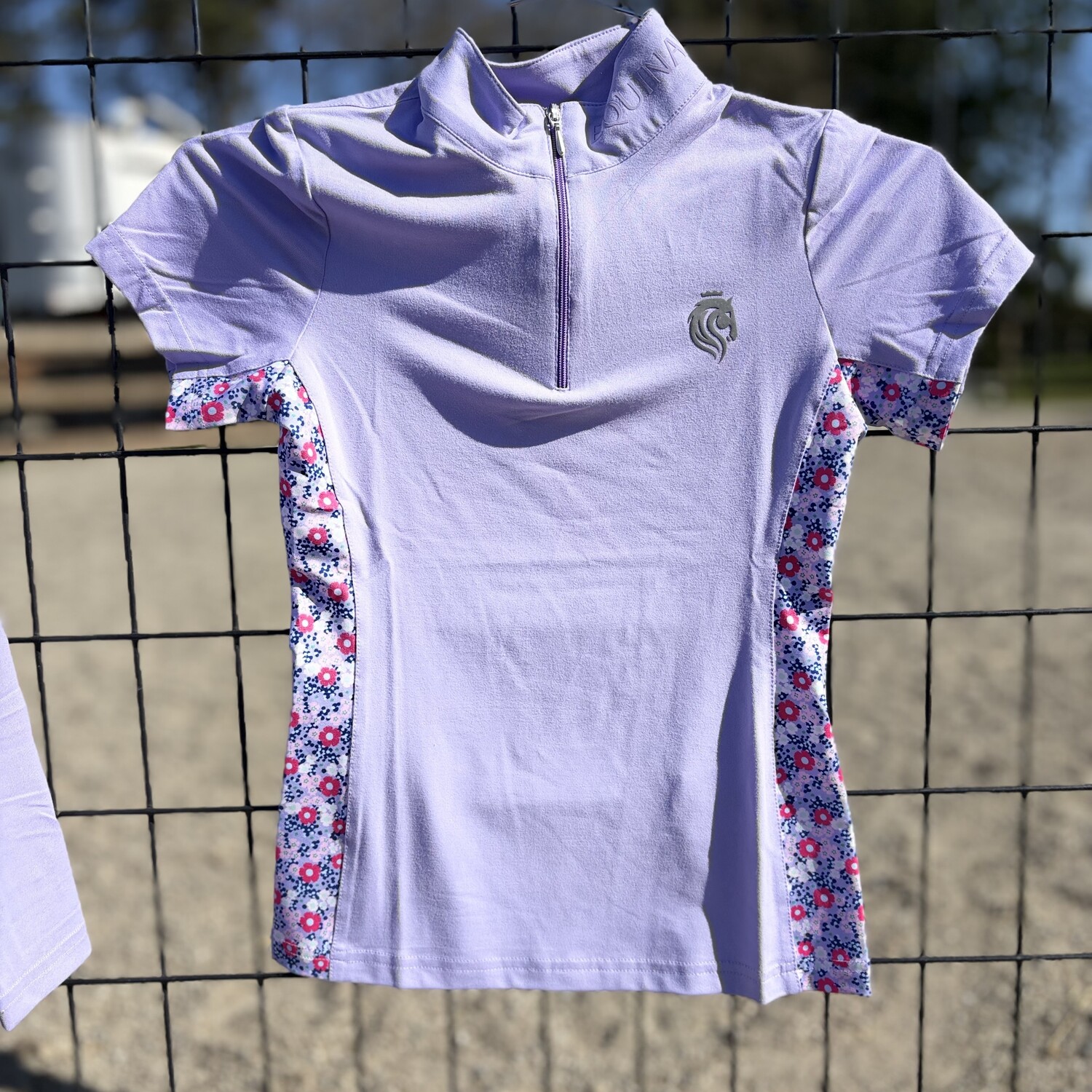 The Equinavia Lena Kids Short Sleeve Quarter Zip Shirt is a stylish addition to any young rider’s wardrobe. Designed to complement the Lena kids pull-on, this shirt also stands out on its own with its traditional quarter-zip style and fun noevelty print. Made from a soft and comfortable poly blend with a stand-up collar, it features a YKK zipper for easy wear.