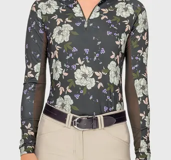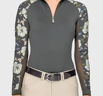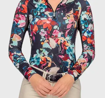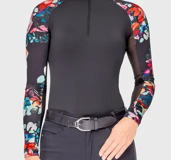 The purrrfect, sophisticated animal print for your active wardrobe. Printed sleeves are paired with flattering black bodice. Long sleeves, ¼ zip, UPF 30, breathable power mesh and soft 4-way stretch fabric in a contemporary fit.