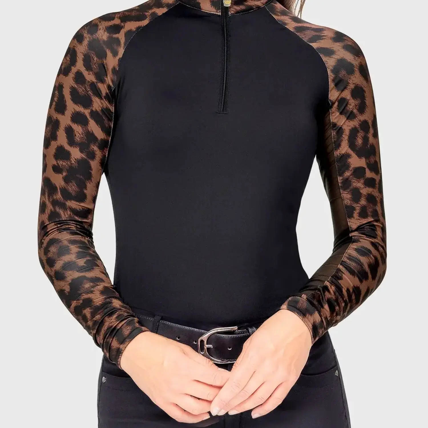 Espresso Leopard Long Sleeve Raglan 1/4 Zip Sun Shirt