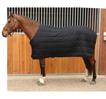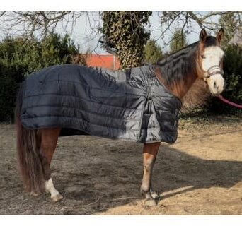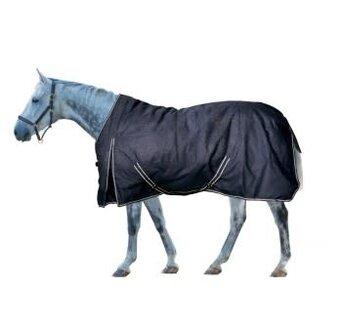 The Century Exercise Sheet with Fleece Lining provides warmth and protection during rides with its durable 600D polyester outer shell and cozy fleece lining. Designed for convenience, it features a saddle cut-out, hook and loop front closure, tail tie, and D-rings for leg straps, ensuring a secure and comfortable fit.