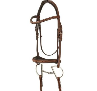 Gold RCS Snaffle Dressage Bridle with Crank Noseband and Reins