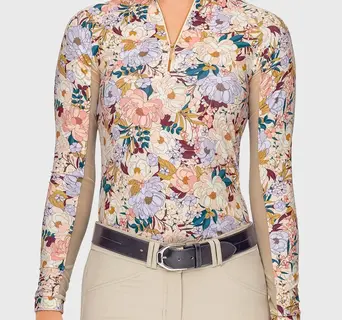 Champagne Blooming Peonies Long Sleeve 1/4 Zip Sun Shirt