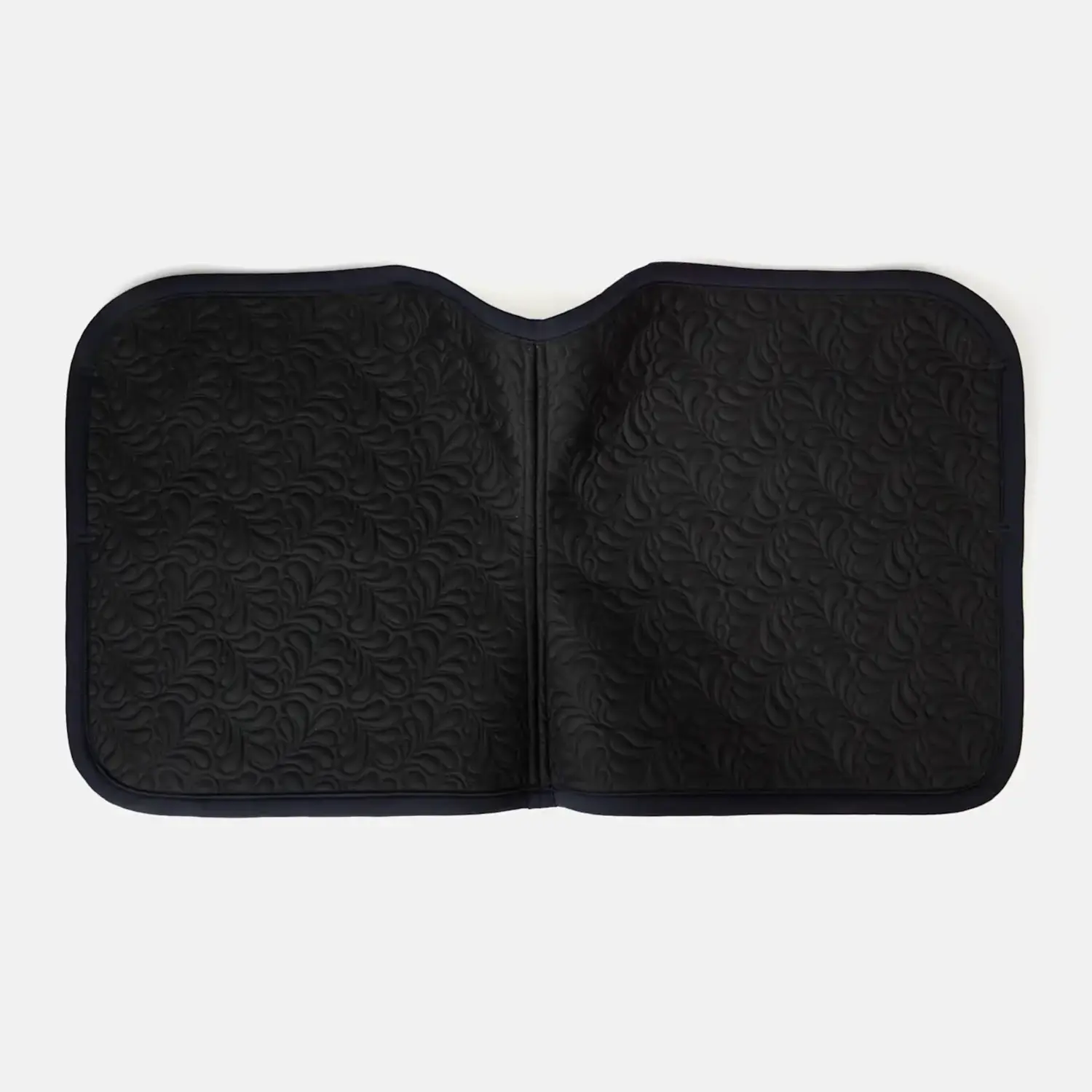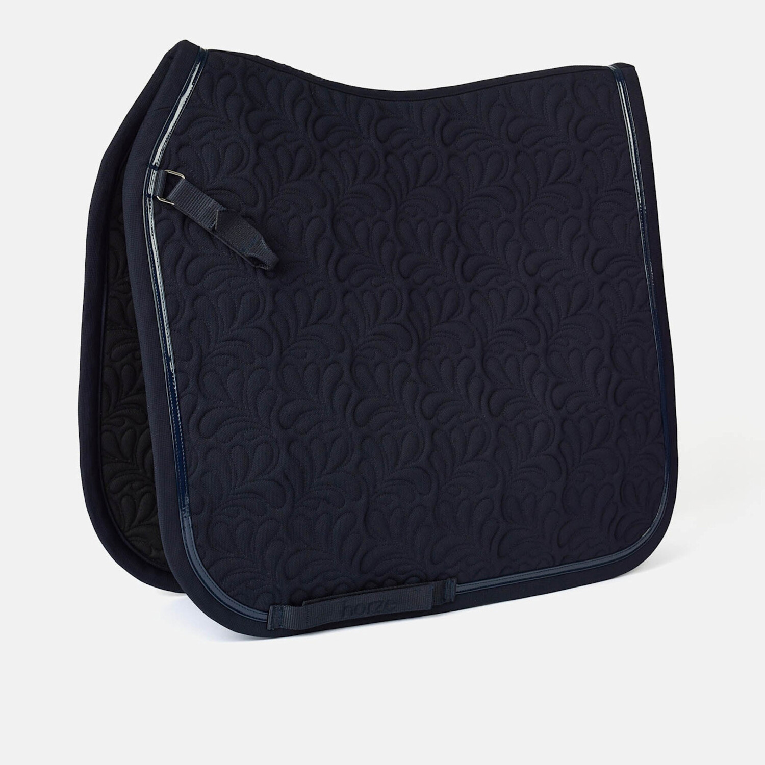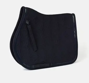 This saddle pad features soft padding that creates a comfortable, structured surface and a well-balanced overall look. The decorative quilting pattern adds an elegant, detailed appearance.