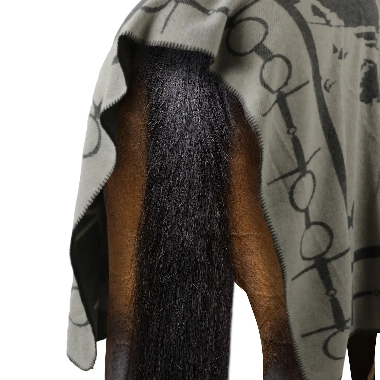 The B Vertigo Fusion Throw Blanket can be used on your horse or as a cozy accent in your home. Measuring 78.75 x 74.75 inches, it features a heavy-quality wool-look fabric with a chic equestrian pattern. Finished with a contrasting blanket stitch along the edge and a subtle logo badge, this throw combines functionality with refined equestrian style.