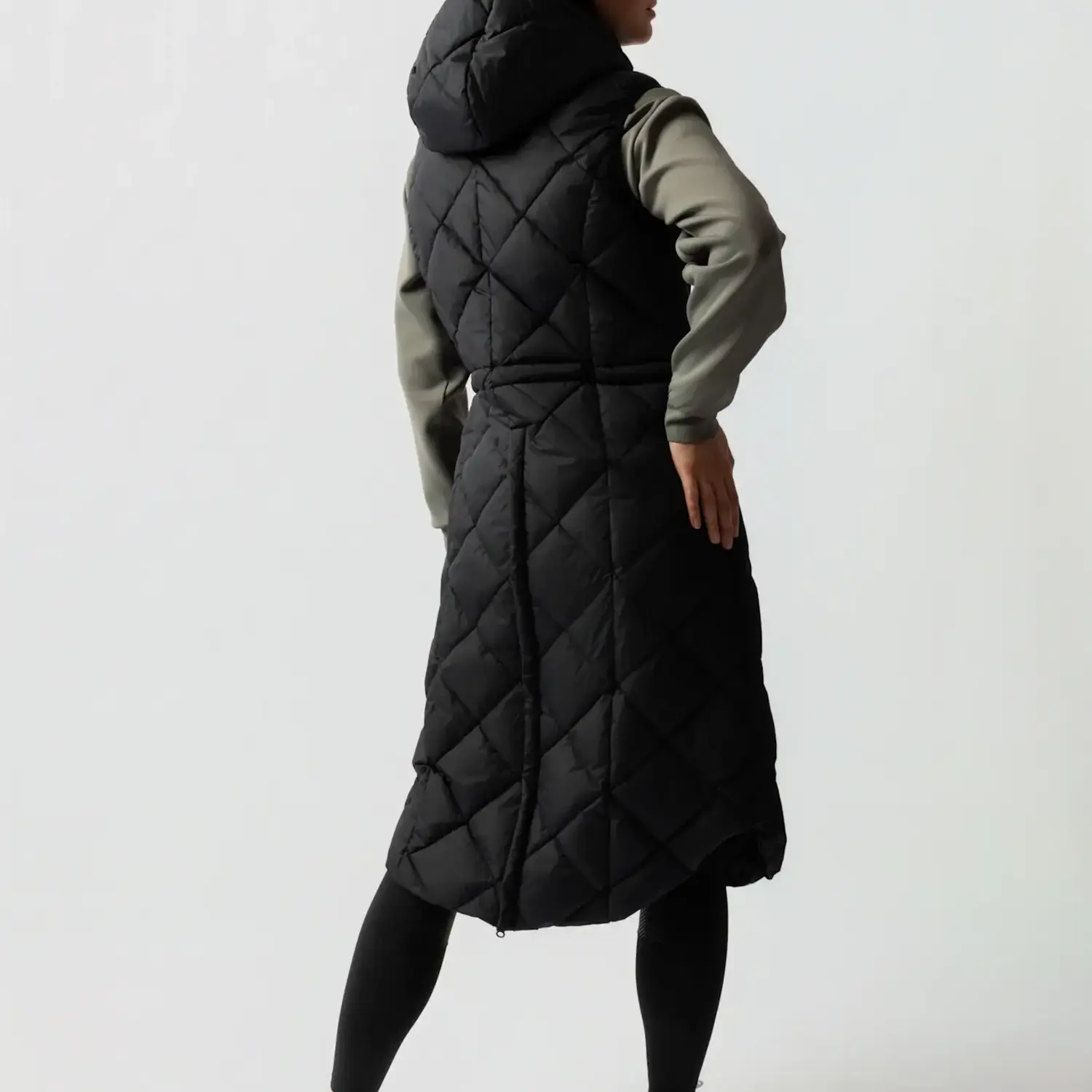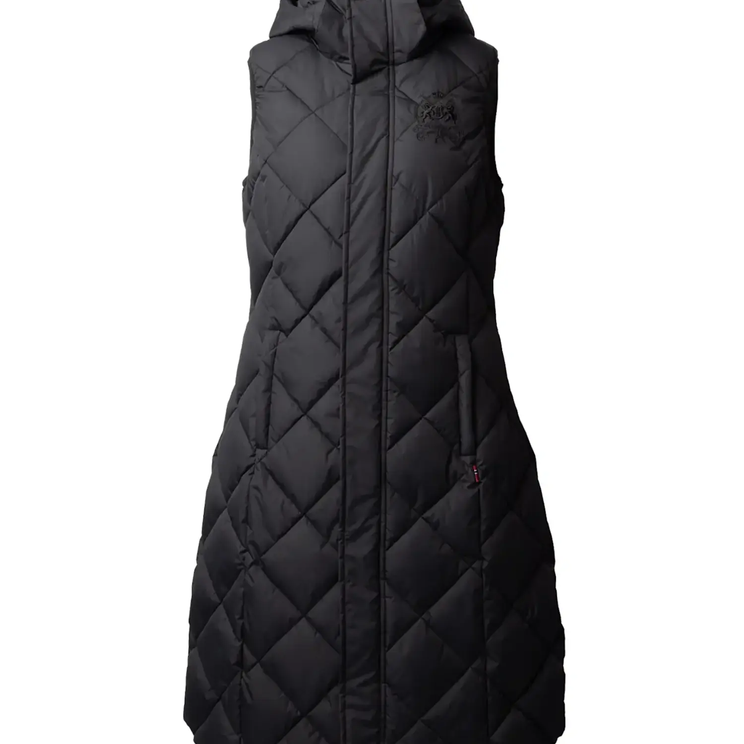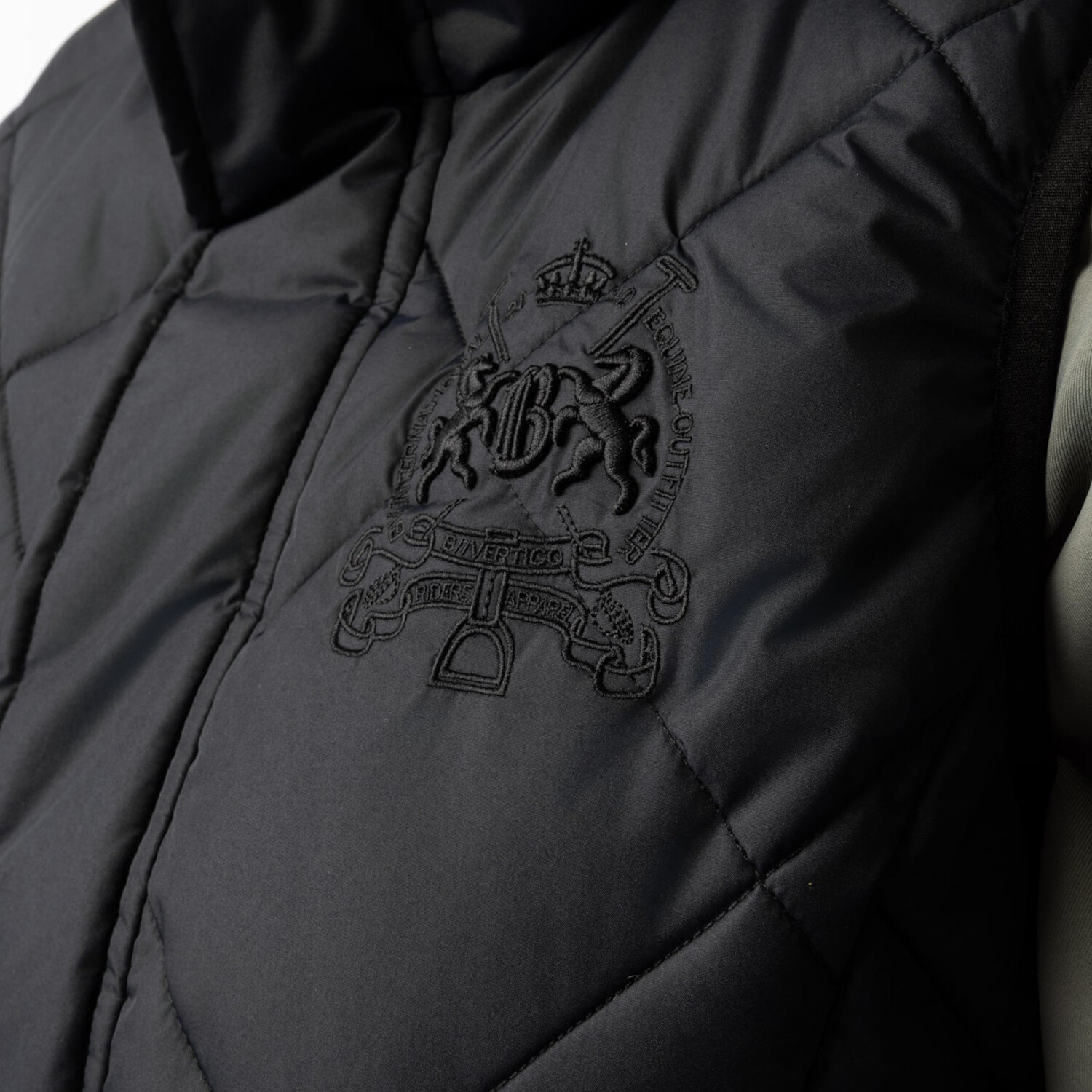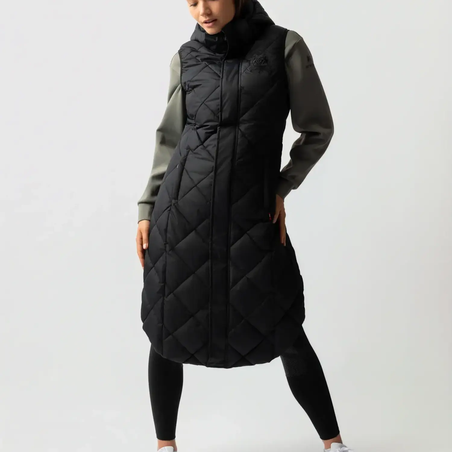 The B Vertigo Gem Womens Long Padded Riding Vest features 3000mm waterproof and 3000mvp breathable fabric with warm padding for comfort. The vest has a longer cut for extra coverage, a removable hood, and an opening slit at the back for ease of movement in the saddle. Elastic straps allow the vest to be secured to your legs while riding, keeping it in place and ensuring maximum comfort and functionality.