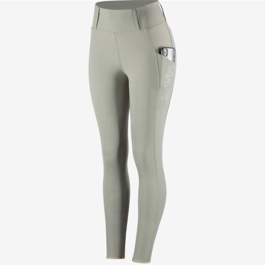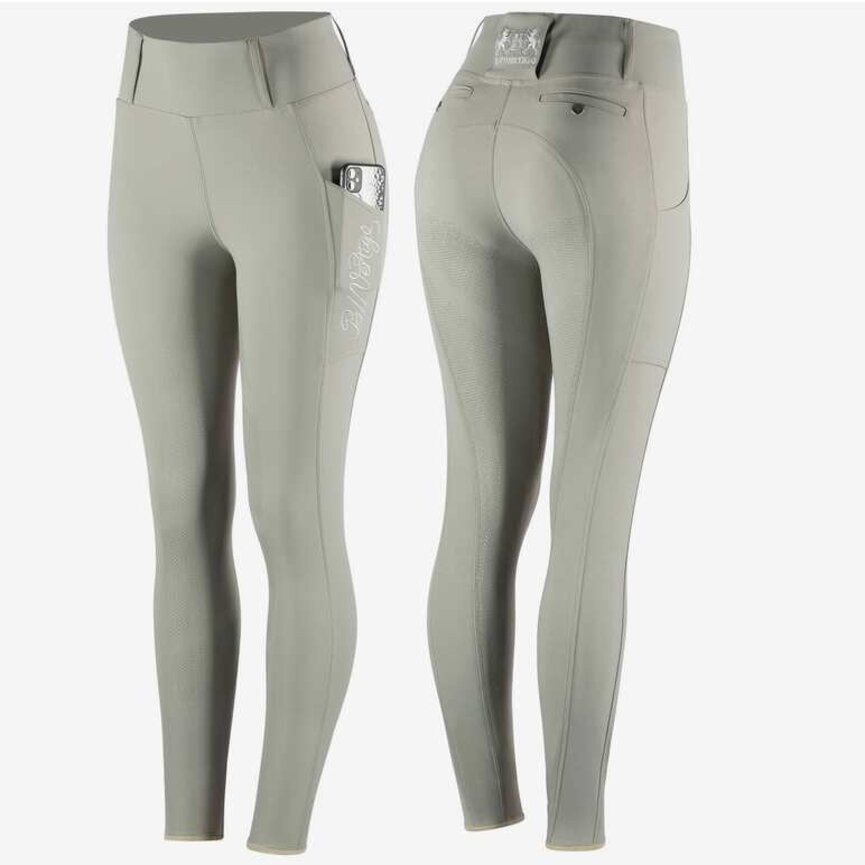 Choose a pair of these easy-to-wear riding tights instead of traditional breeches. Trendy and perfectly comfortable riding tights with 4-way stretch fabric and a silicone print full seat. The high waist features belt loops should you wish to also wear a belt, and the fit supports your lower back and seat in the saddle. These soft tights have a bold B Vertigo print logo on the back and leg. A super handy phone pocket on the thigh is ideal for riding out when you may want to take photos or keep a form on contact on you.