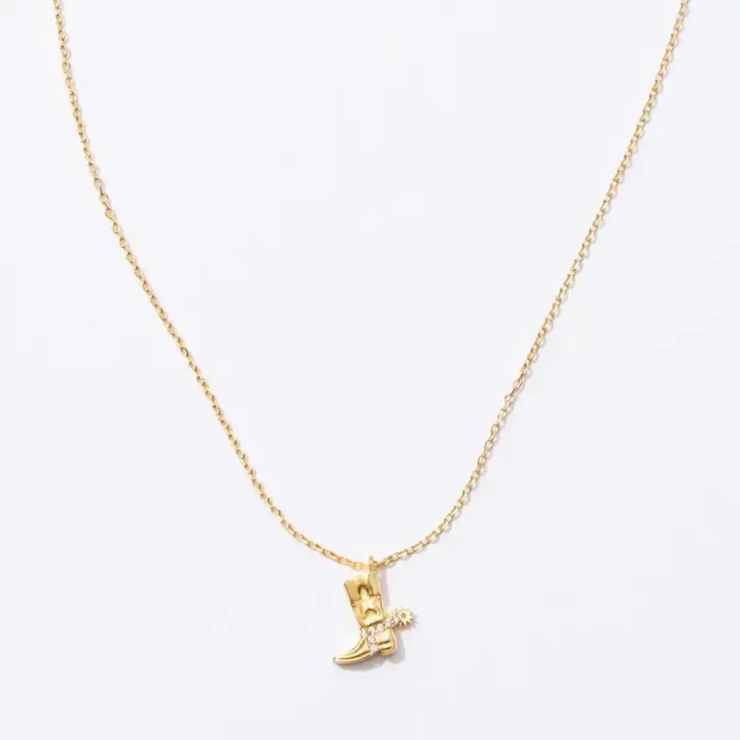 Add a playful Western charm to your look with this Gold Dipped Cowboy Boot Necklace. Featuring a detailed boot pendant on a dainty gold chain, this piece is perfect for those who love a touch of country chic with modern elegance.