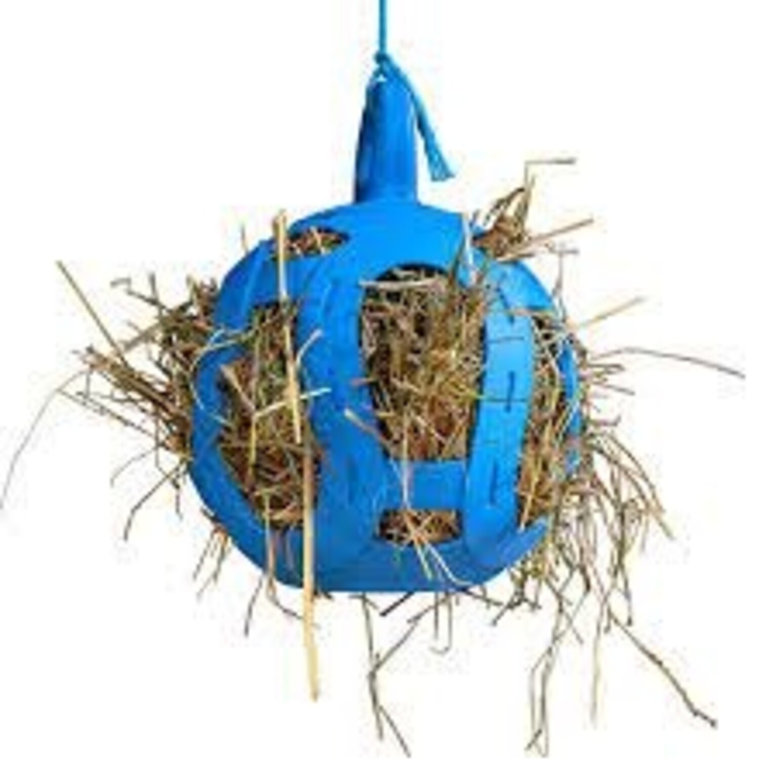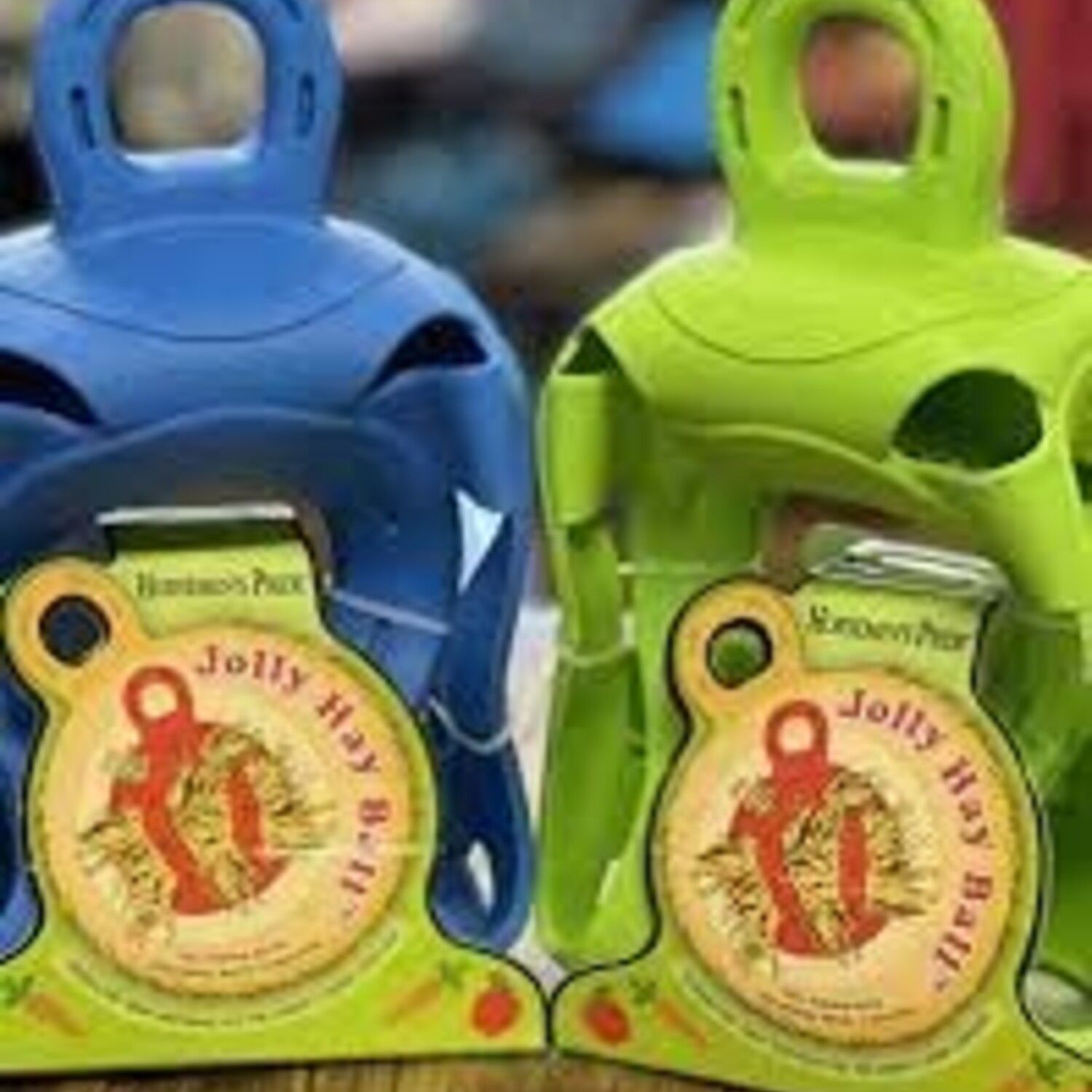 The beloved Jolly Ball meets interactive hay dispenser with the exciting Jolly Hay Ball! from Horsemen's Pride! Stuff with hay, carrots, apples and hang for your horse, pony, goat, or other livestock for a mentally stimulating way to feed or treat! Smaller holes can be stuffed with apple chunks, carrots or other favorites for extra enticement. Highly durable and meant for play indoors and out.