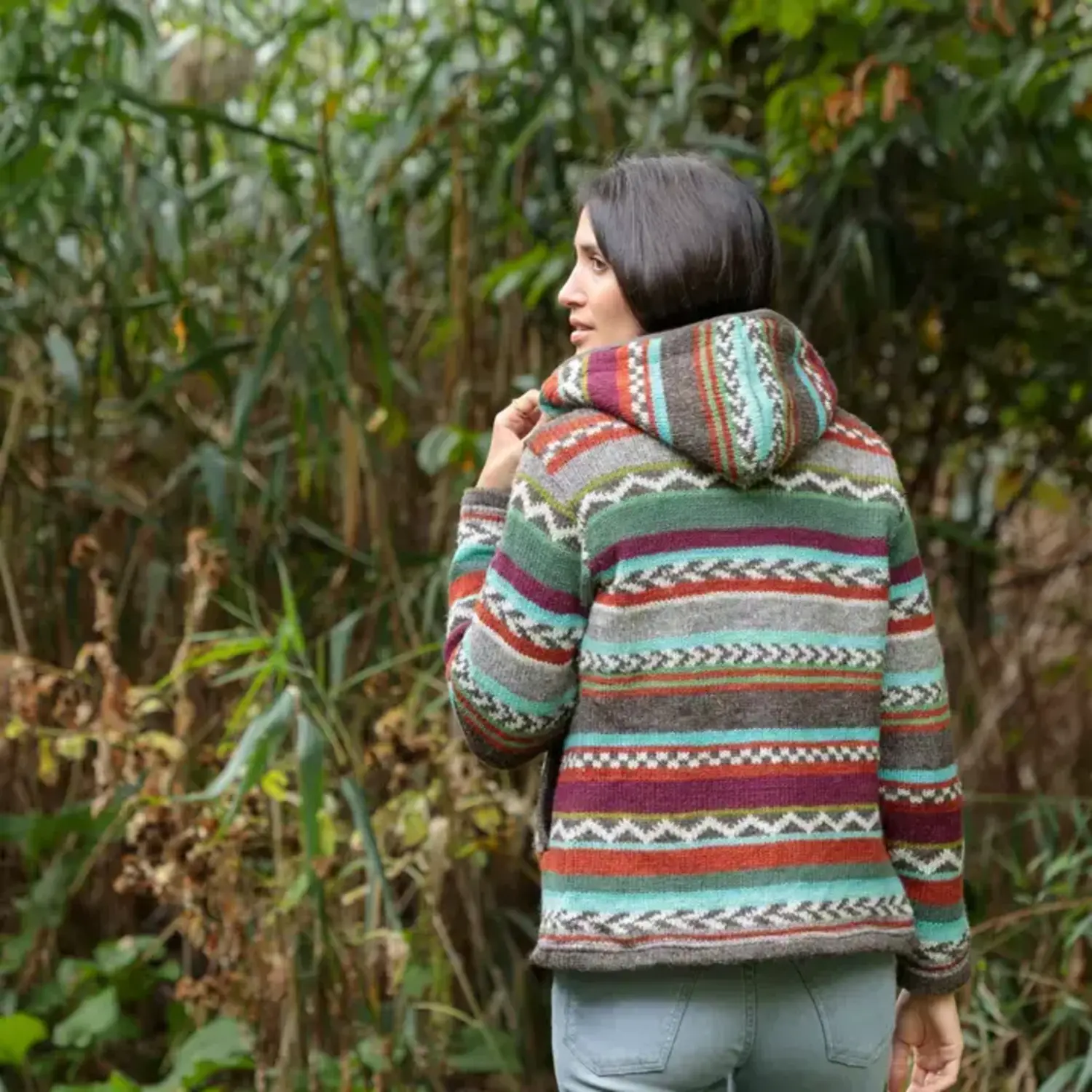 The Journey sweater captures the spirit of adventure with its bold folk-inspired pattern and cozy zip-up hoodie design. Handcrafted from 100% wool and fully fleece lined, it’s built for warmth, comfort, and everyday movement. Whether you’re working in the barn, walking through the woods, or enjoying a quiet morning at home, this versatile layer delivers practical warmth with artisan-made charm. Finished with a generous hood and deep pockets for added function.