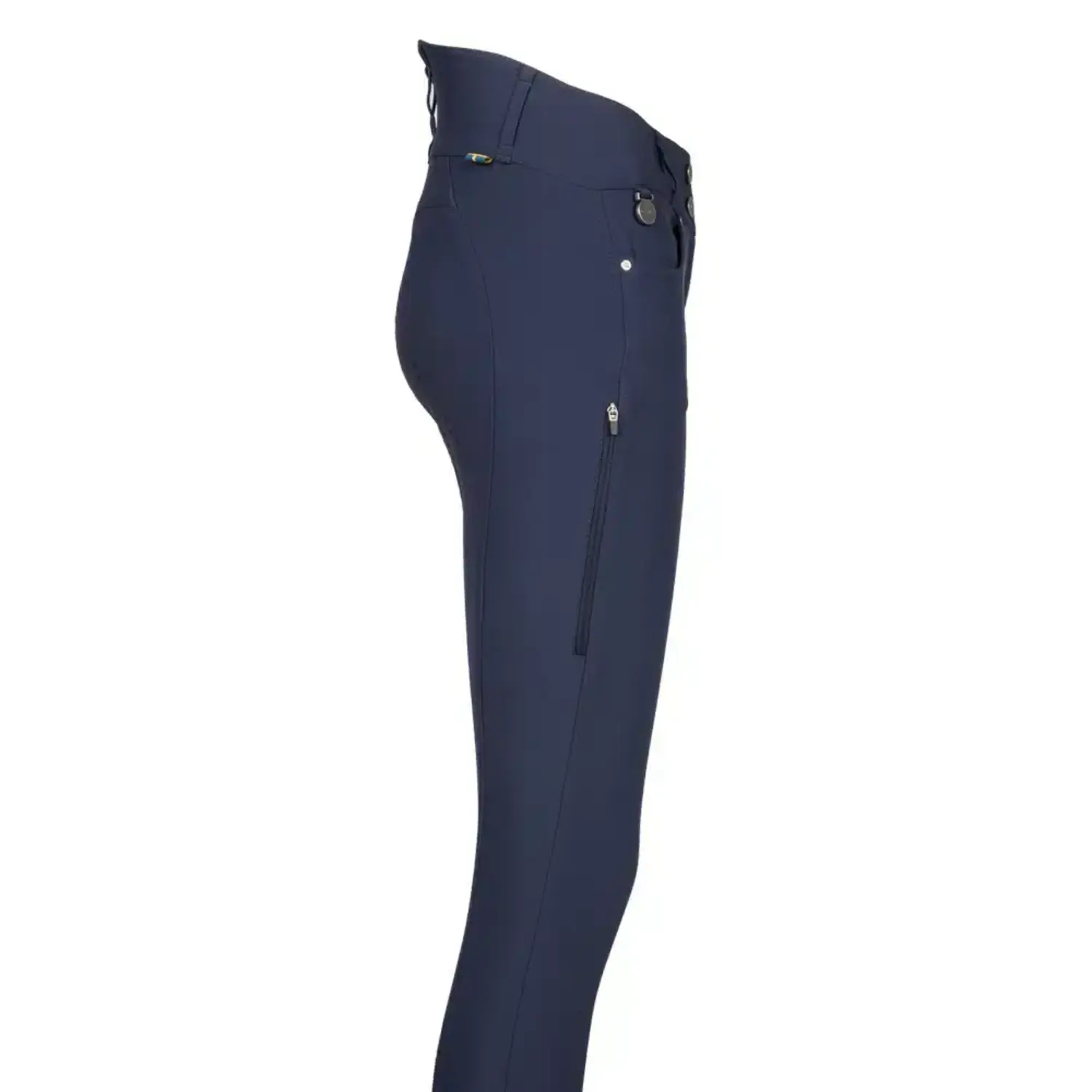 These breeches are stretchy with a unique tailored fit that follows the body’s shapes when you sit in the saddle. Seamless on the inside of the legs and seat to avoid pinching or rubbing. Side seam panels on the outside of the leg are placed to not add pressure to the kneecap or the sensitive tendons and muscles of the knee. The soft and elastic high waistband provides good support and follows the contours of the lumbar spine.