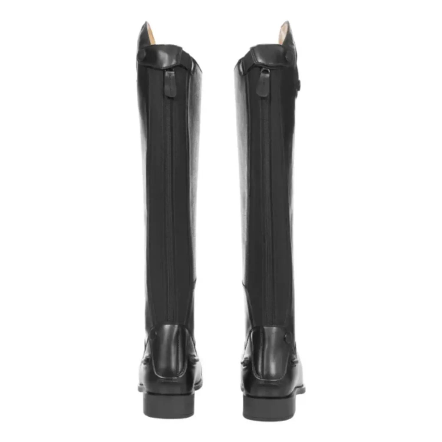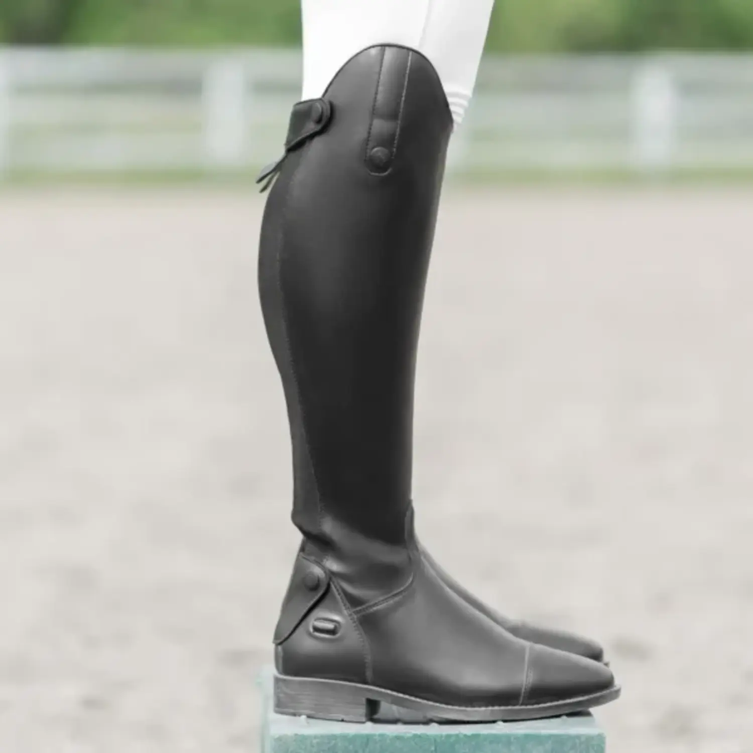 The Equinavia Karina Women’s Synthetic Dress Boots are designed for a professional show-ring appearance without high-maintenance care. These easy-to-clean equestrian boots feature an elegant Spanish top and contoured ankle for a flattering, elongated silhouette. Dual elastic gussets and a heavy-duty YKK zipper ensure a secure, custom-like feel, while the non-skid rubber sole provides reliable traction. Perfect for all disciplines, these boots offer a timeless style and lasting durability for every rider.