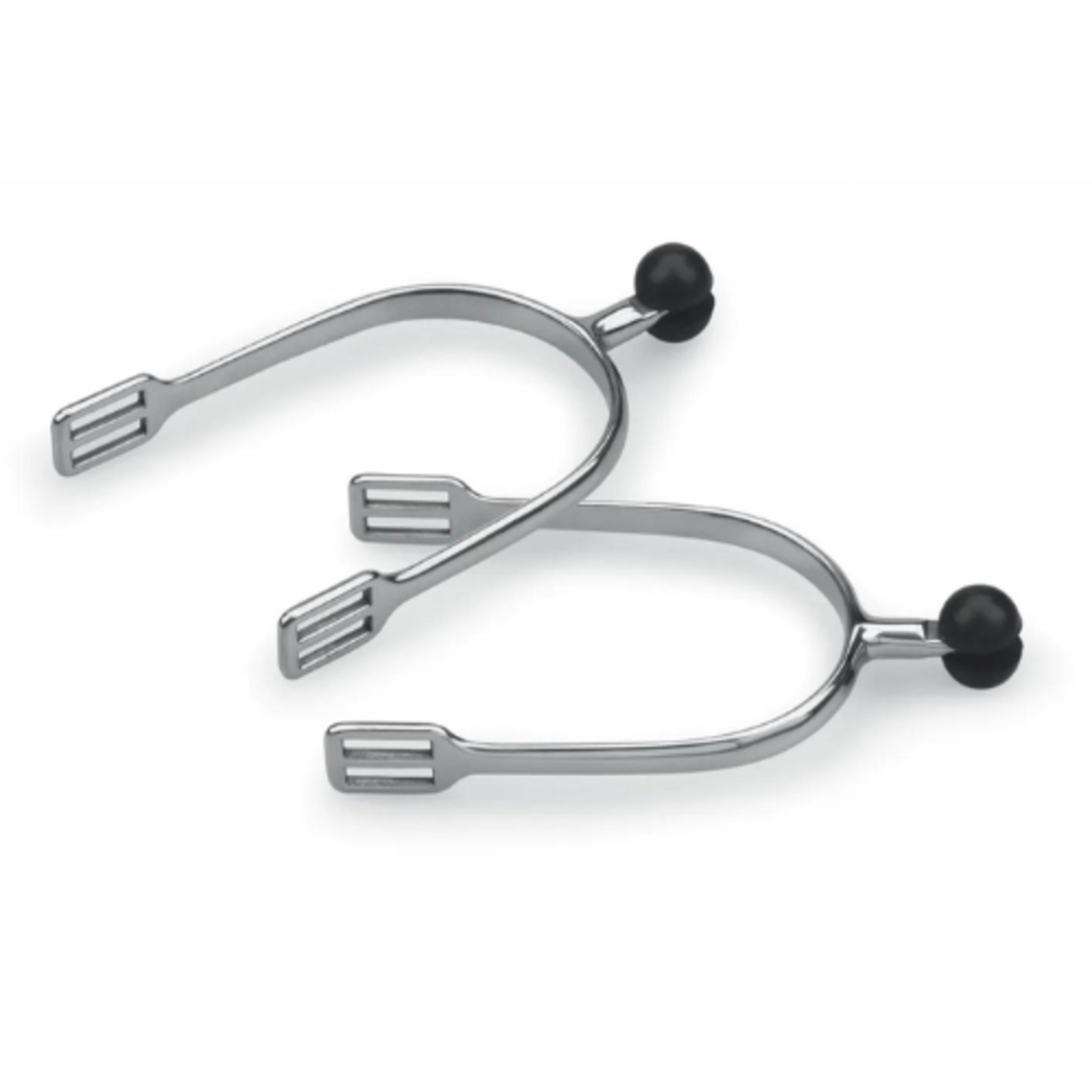 More gentle than a standard shank spur, the ball rolls rather than jabs and prevents marking. 30mm neck.