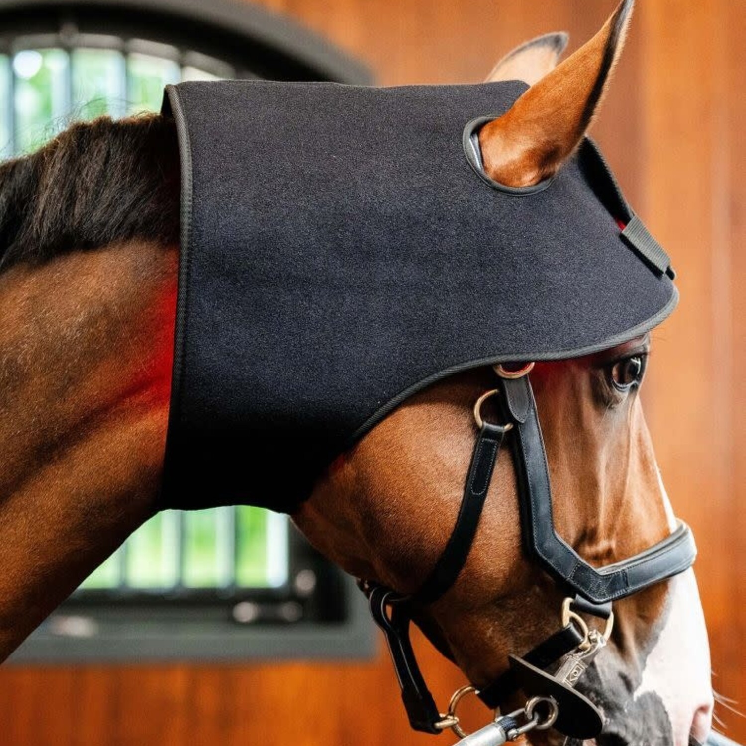 The Horseware® LED Red Light Therapy Poll Cap may be beneficial for horses with poll sensitivity or TMJ concerns. Its 230 LEDs use a combination of different light wavelengths to target both the dermal layer and deep tissues. 660nm red light targets the surface, while 850nm infrared penetrates deeper to reach soft tissue. LED treatment has been shown to increase blood flow and promote cellular activity, which may reduce inflammation, may aid skin conditions, and may accelerate wound healing.