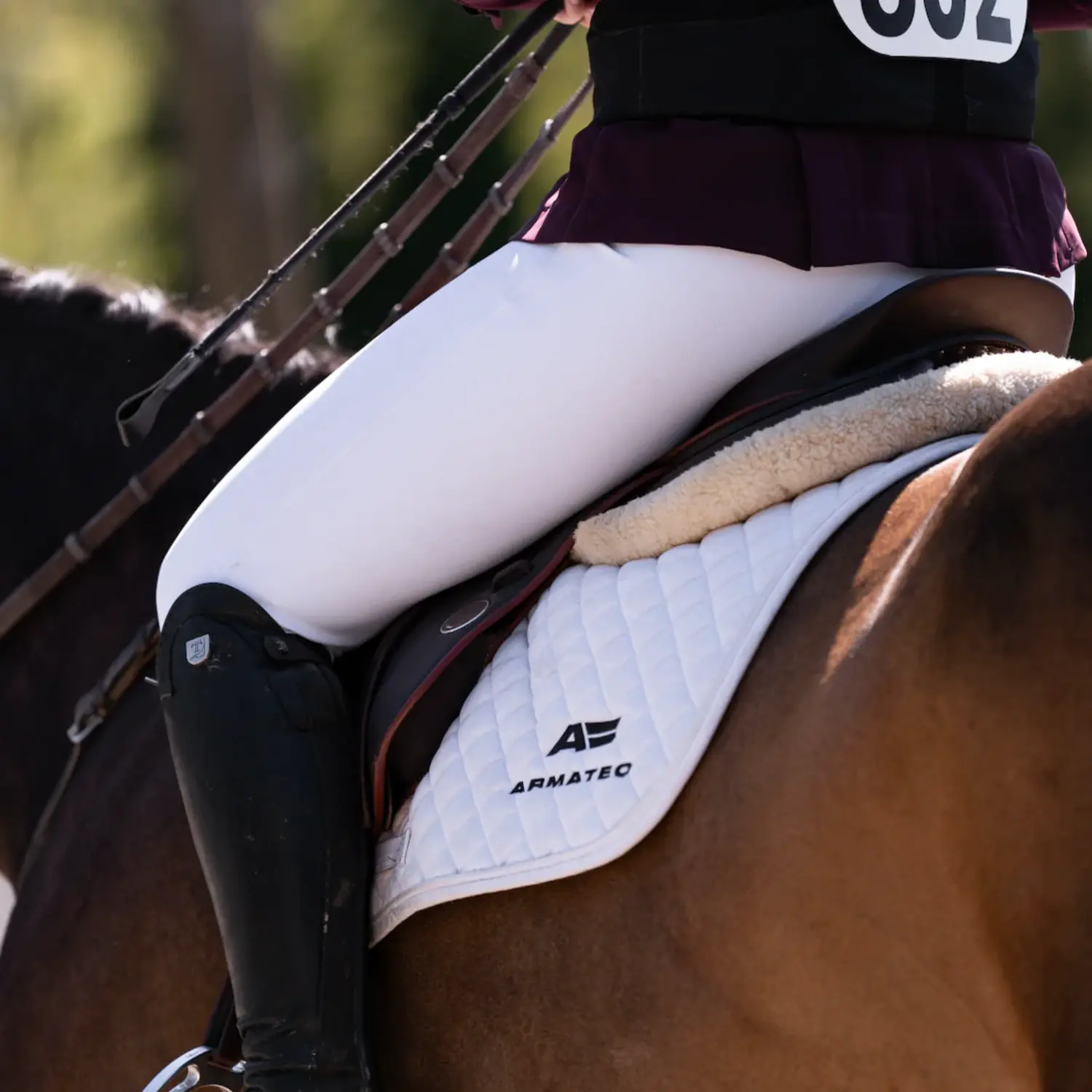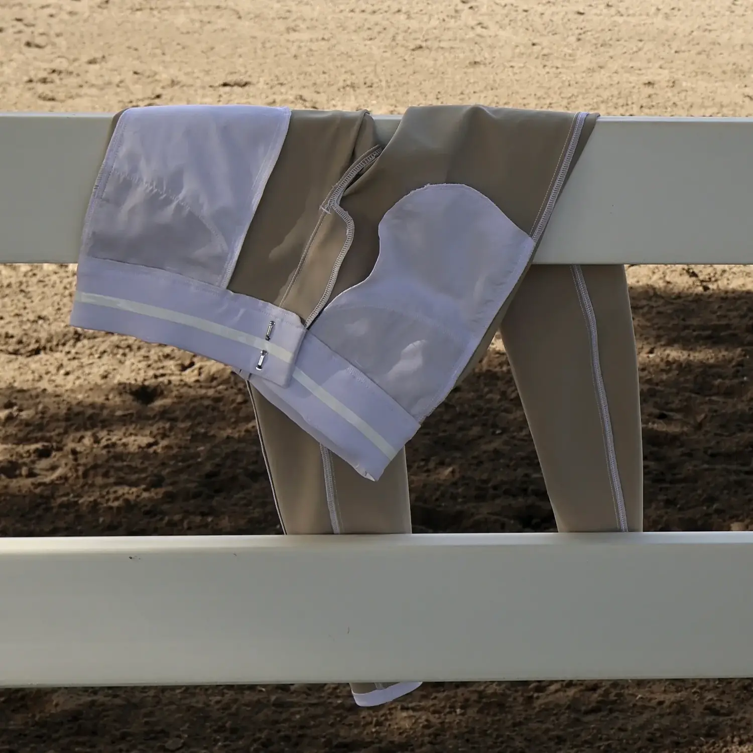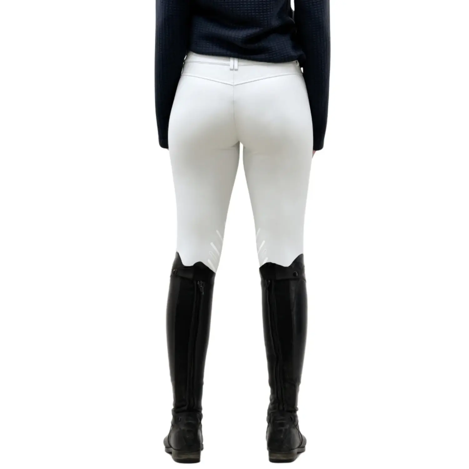 But that’s not all! Our premium fabric is treated with a water- and stain-resistant coating, keeping you dry and maintaining that crisp, bright white look ride after ride. Whether you’re in the arena or on the go, these breeches combine style, functionality, and durability for the ultimate riding companion.