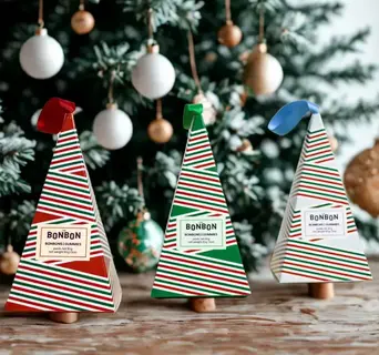 The trio of Christmas houses offers an assortment of 85g of candies per house. Perfect for decorating the tree, gifting as a hostess gift or just devouring yourself!