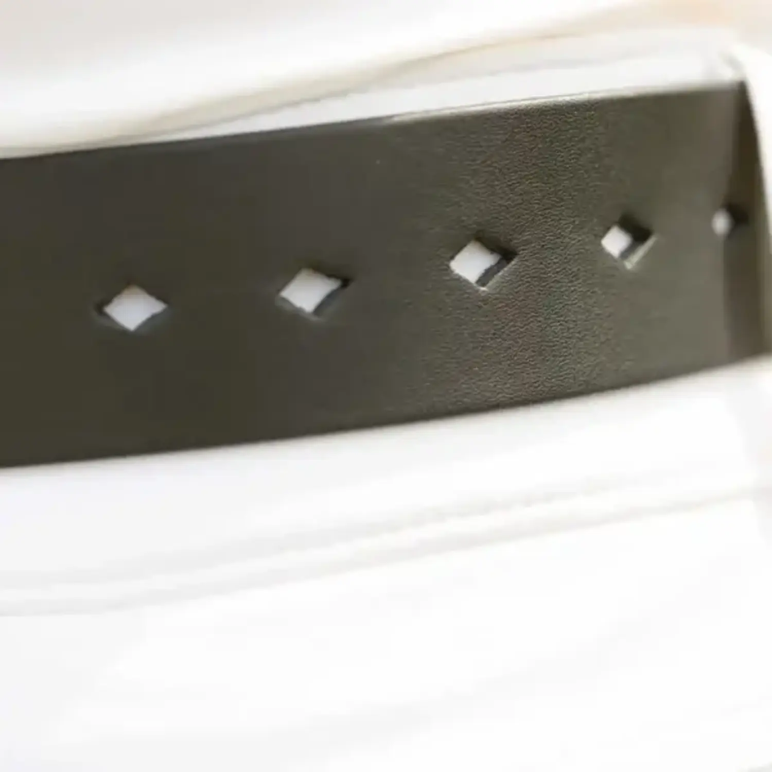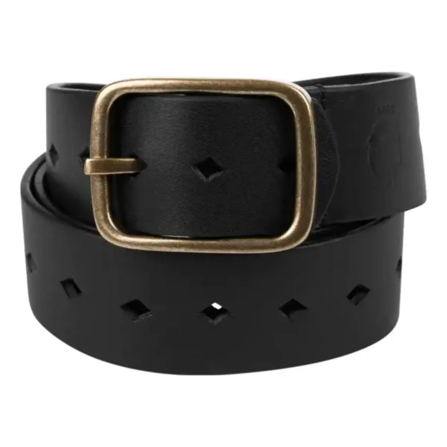- All-over mini diamond-shaped cut-outs make this leather belt stand out in and out of the barn