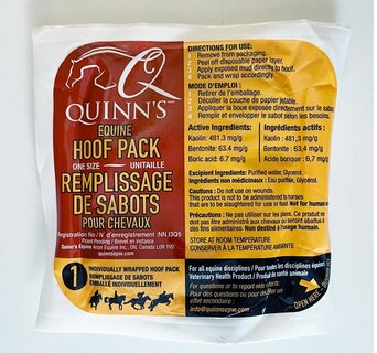 The Quinn’s Equine Poultice Wraps are perfect for all disciplines. These easy to use pre portioned poultice wraps offer no mess, no waste, and vie consistent coverage every time! They are easy to pack for a show, and even come with paper to wrap. Simply open the package, remove and separate the 2 wraps. For each wrap carefully peel one layer of paper off to expose the poultice. Apply with exposed poultice directly on the leg. Gently mold and press t o the leg leaving the paper on the poultice. Proceed with your regular standing bandage. Two wraps per package, one size.