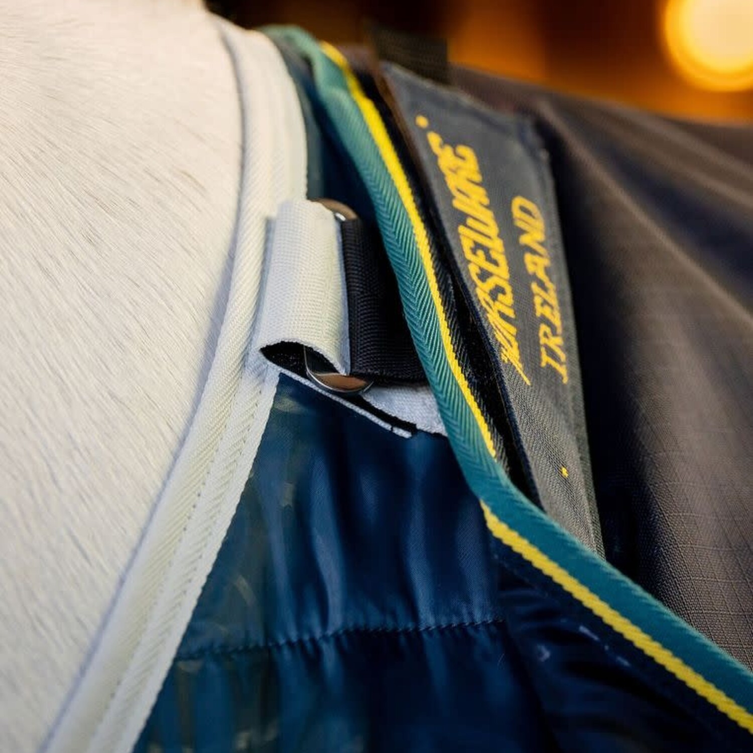 The improved extended neck and chest coverage eliminates wind and water exposure while protecting the secure front closures. This robust, breathable turnout has a cozy 100g Thermobonded fiberfill offering lasting heat retention, supported by the anti-bacterial, anti-static and shine-enhancing silky-feel lining that helps keep a healthy skin environment and a shiny coat even on the clipped horse.