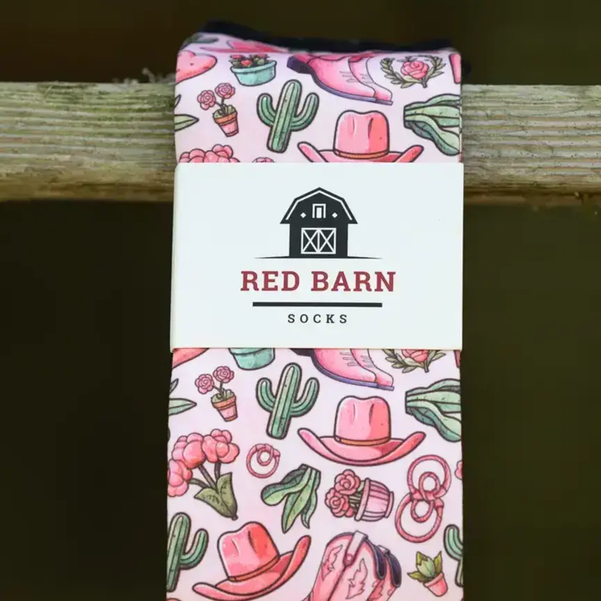 Add a splash of personality and color with these beautiful socks from Red Barn! Experience the perfect blend of comfort and durability with our boot length socks. Crafted from a high-quality mix of cotton, polyester and spandex, these western-themed boot socks offer a snug fit that moves with you and won't fall down. Breathable and soft, these socks are the ideal pairing with your favorite boots. One size fits all Boot sock length (comes up to just under knee) Cotton/spandex/polyester blend