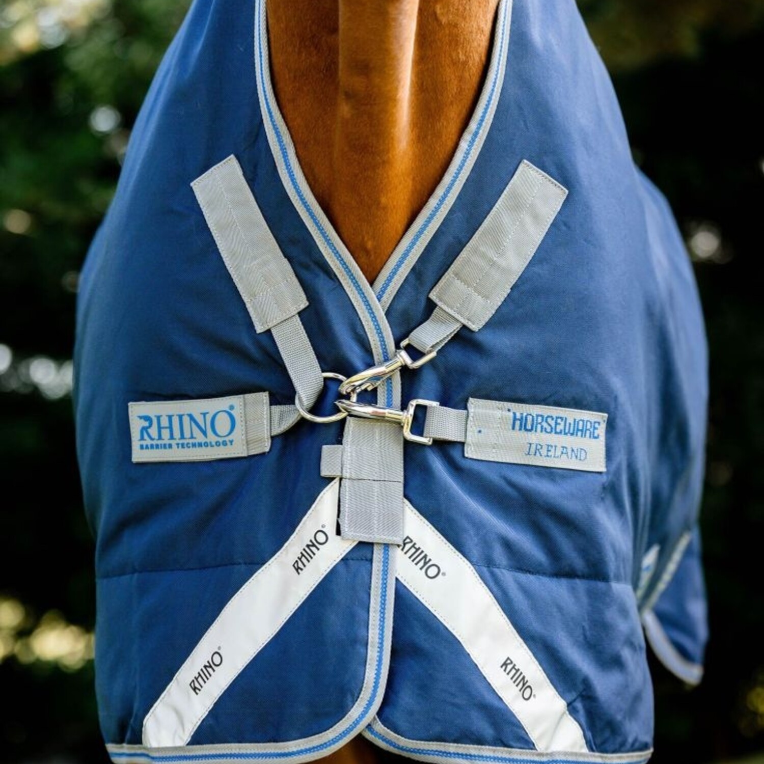The high neck design of the Rhino® Wug Turnout 0g provides more protection from the elements and reduces wither pressure, making it an excellent choice for horses with high withers.