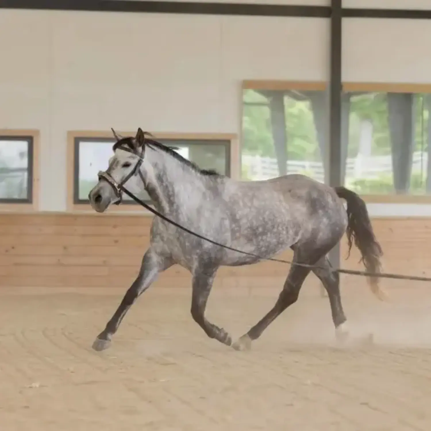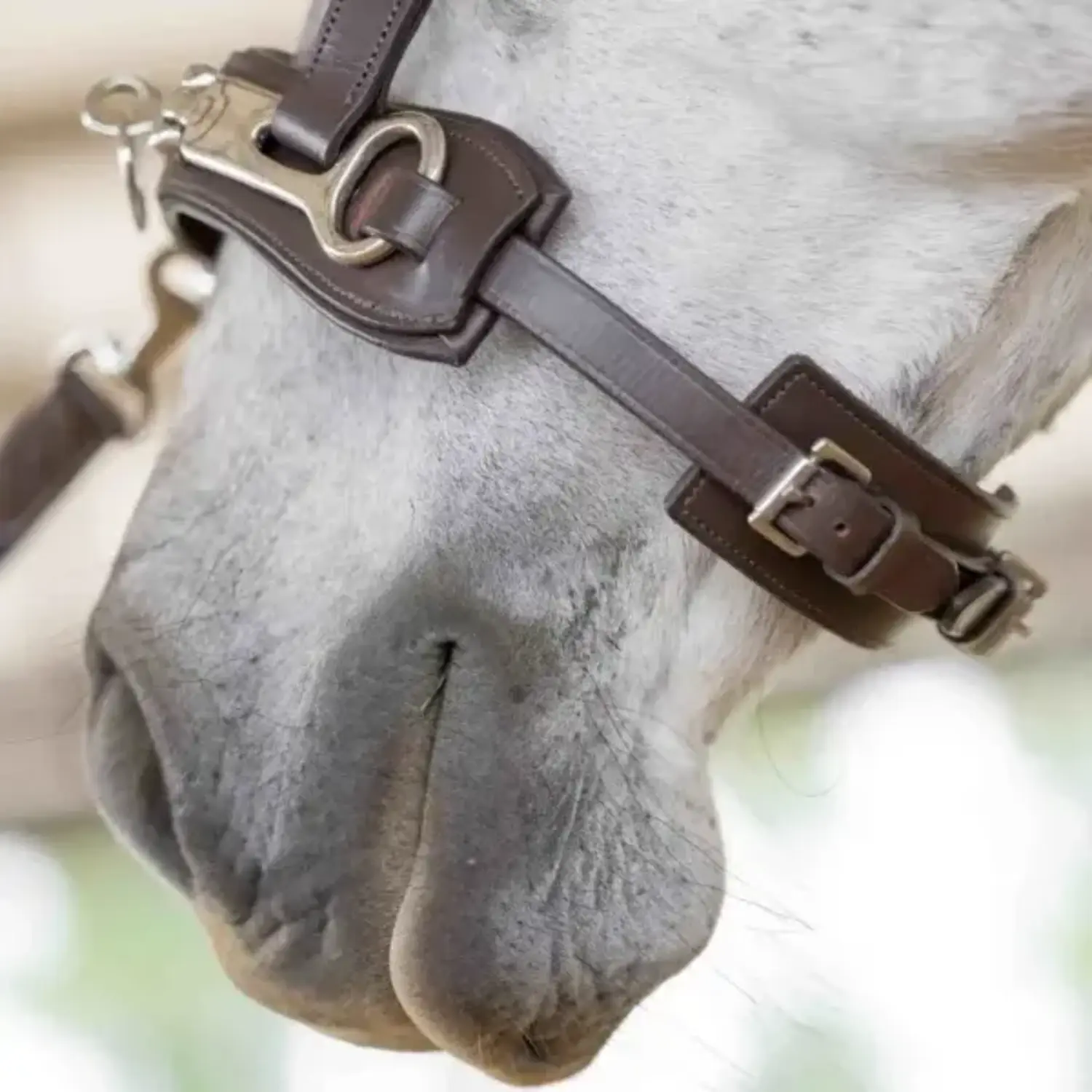- A durable lunge cavesson with a hinged stainless 3 ring nose for attachment of line