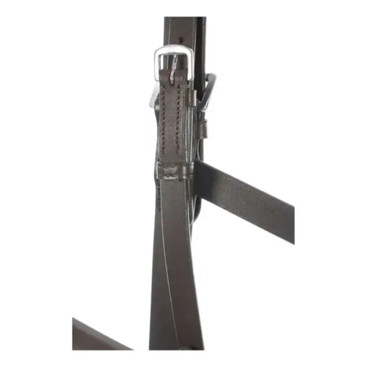 - Durable flat leather head piece is adjustable at cheeks, chin and nose