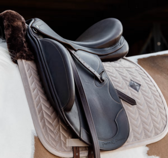 The saddle pad has no annoying straps to attach to the saddle, only a nylon strap for the girth.