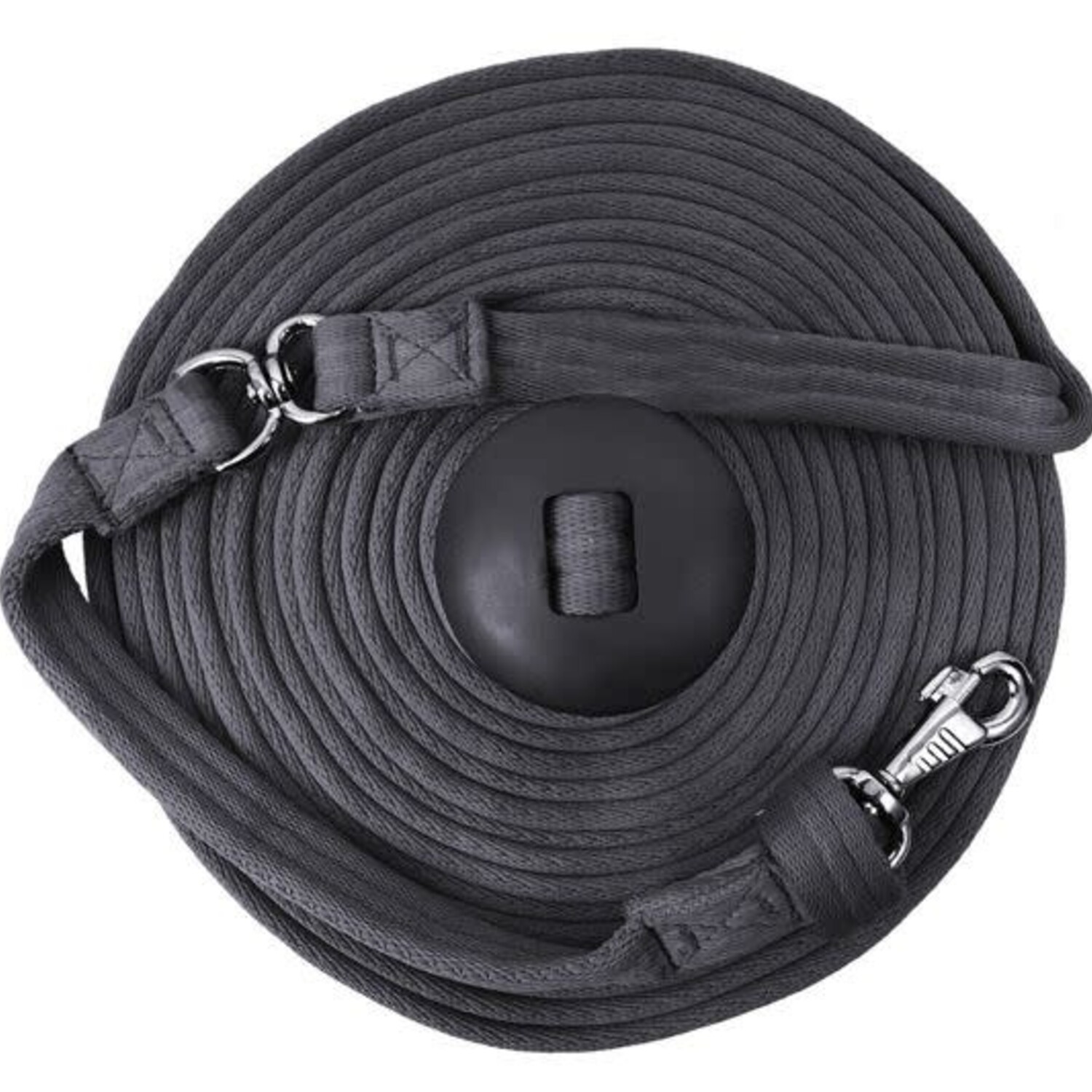 Premium Softgrip 30' Cotton Swivel Lunge Lines with Rubber Stopper are designed to make any activity requiring a lunge line easier and hassle-free. These premium lunge lines are made of a soft and cushioned cotton material that is comfortable to hold while remaining extremely durable. This non-bulky material is also easier to handle and store than other braided or rounded lunge lines, which are often overly heavy and hard to handle. These lunge lines measure 1” wide x 30' long.