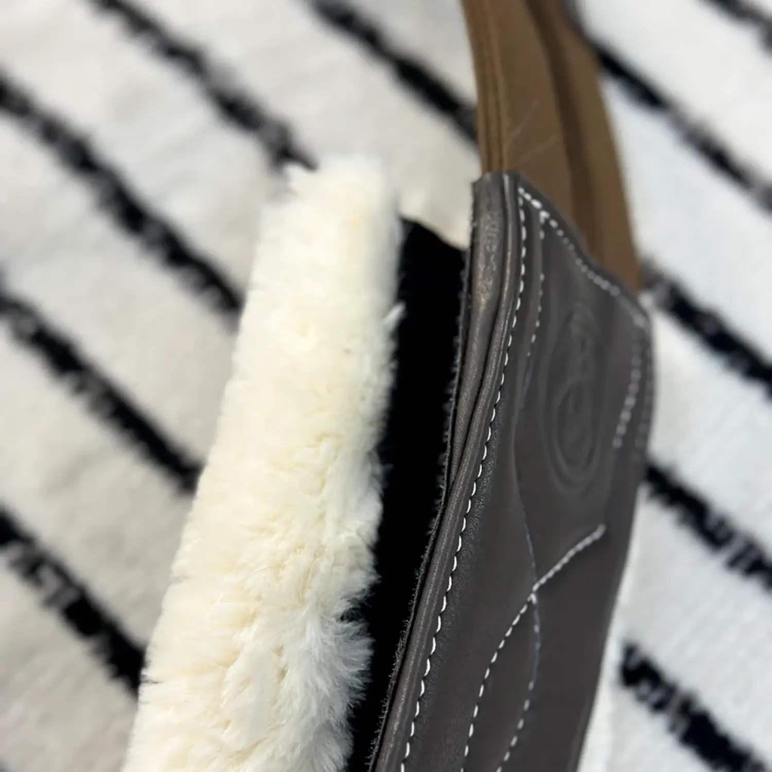Stunning in classic hunter styling while offering a premium comfort for your horse. Ultra soft touch pliable leather overlay with a Velcro attachment for the Plush Liner or neoprene liner. Crisp fancy stitch detail and triple elastic with ring attachment at the center. This is just for the leather overlay, a liner must be added to use.