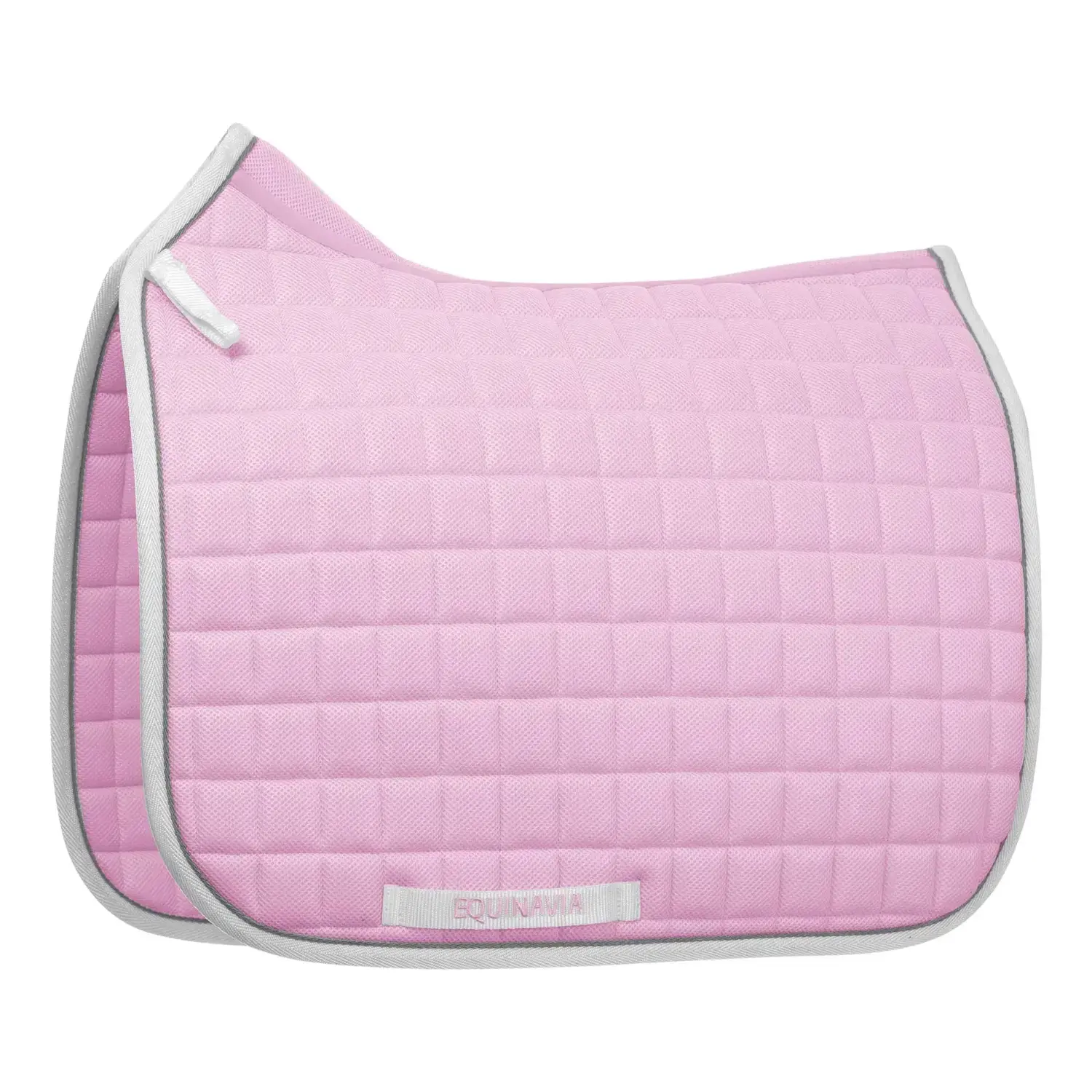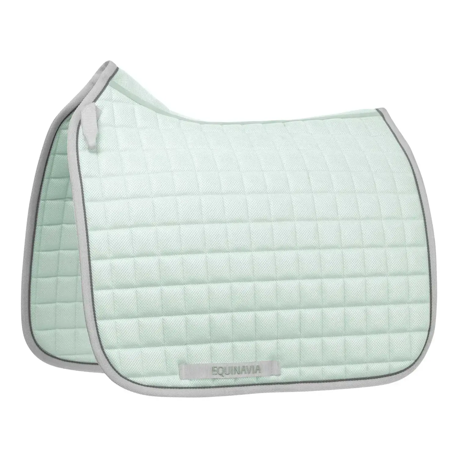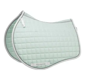 The Equinavia Svalbard Dressage Saddle Pad with NordicAir™ Tech offers superior breathability with an all-over mesh design in a classic square quilt pattern. Its contoured shape ensures a secure fit, while the wide mesh spine enhances airflow. It features contrasting trim for a refined look and small D-ring loops on each side for easy attachment.