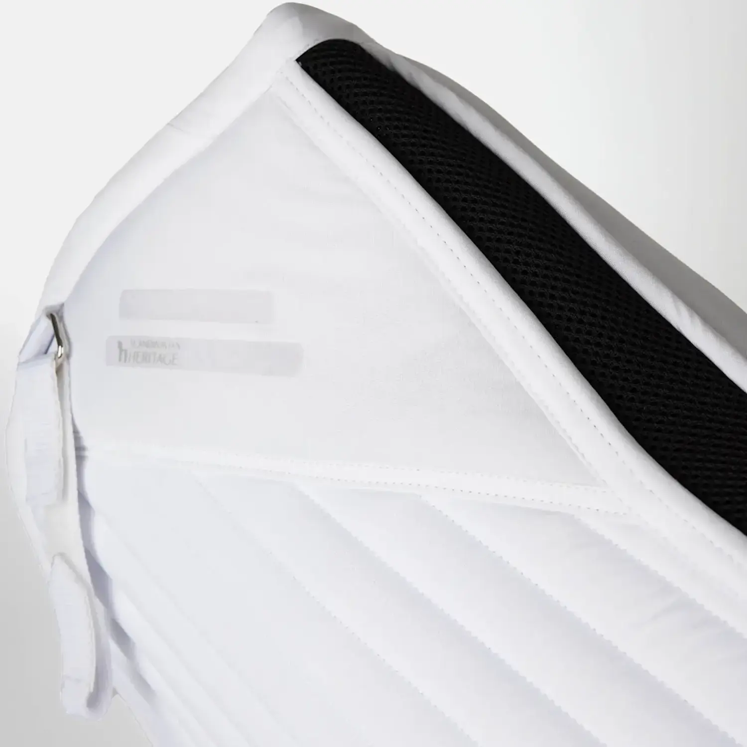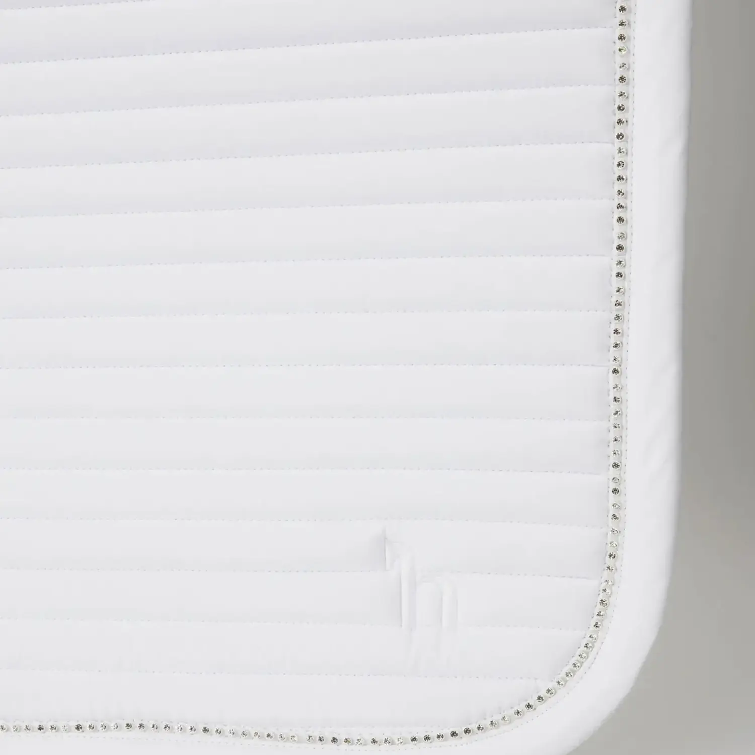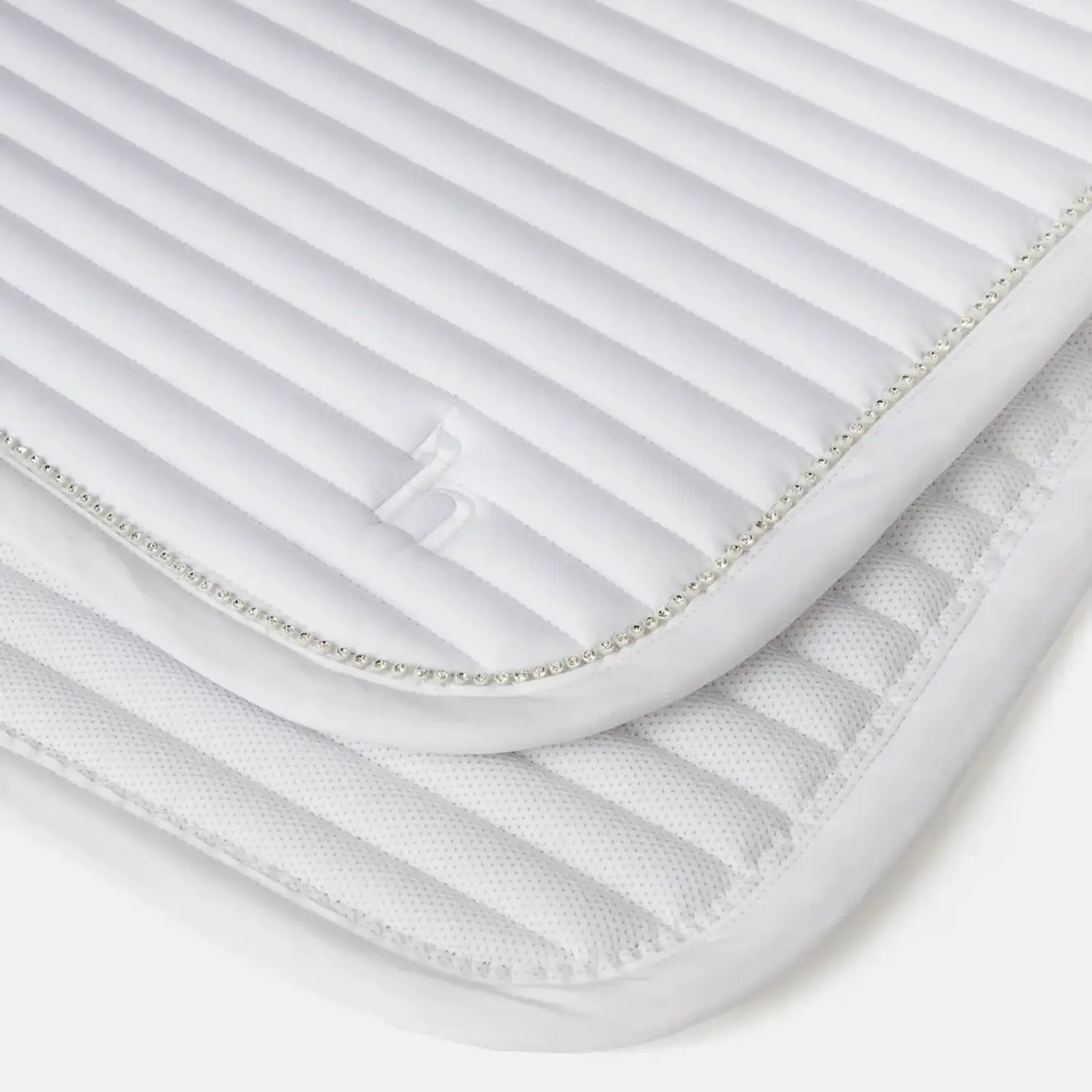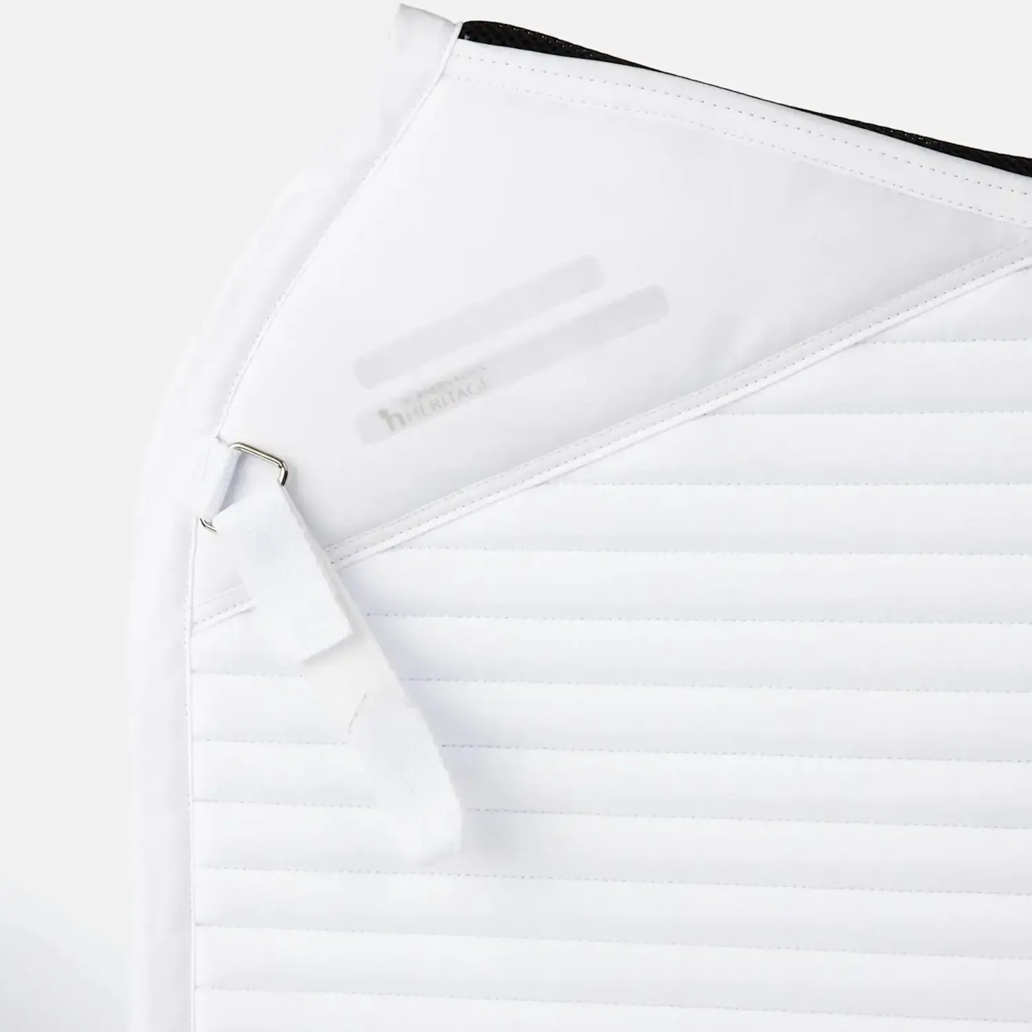 A border with rhinestone elements along the spine adds a subtle, refined accent. A silicone print at the withers area supports a stable position under the saddle. Two fastening options – a removable D-ring strap and a billet strap – allow for flexible attachment. Logo embroidery on both lower girth straps completes the design. A small mesh bag for the spare strap is included.