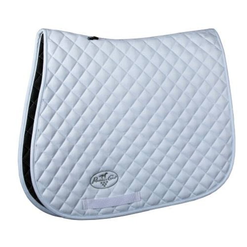 This saddle pad features a classic all-purpose shape with a contoured spine that provides excellent wither clearance. Its stain-resistant quilted cotton top layer ensures durability and easy maintenance, while the antimicrobial VenTECH mesh liner enhances functionality by being absorbent, quick-drying, and breathable.