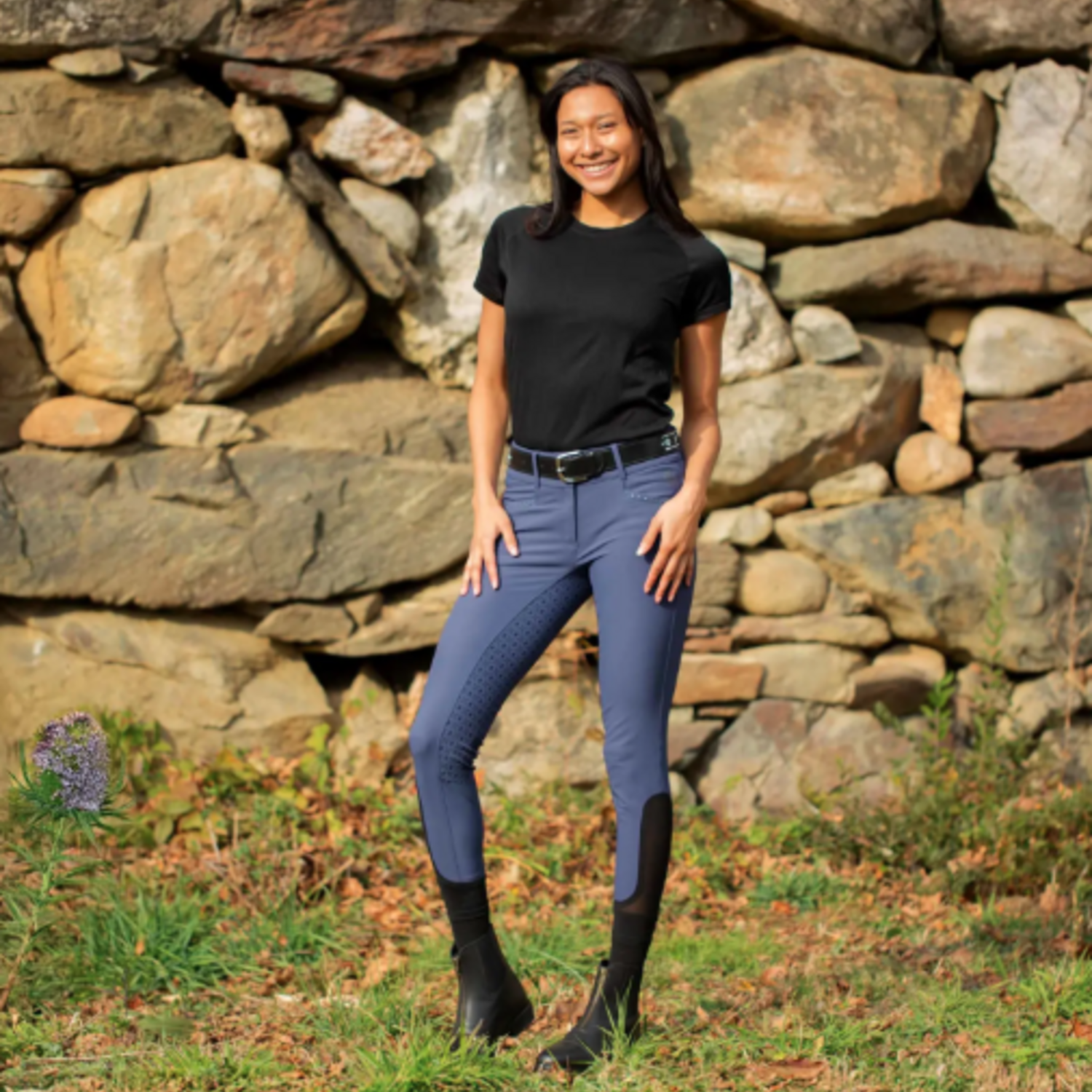 - Mid-rise fit, wider waistband, slightly higher in the back for in-saddle comfort, and silicone grip inside to keep shirt neatly tucked in
