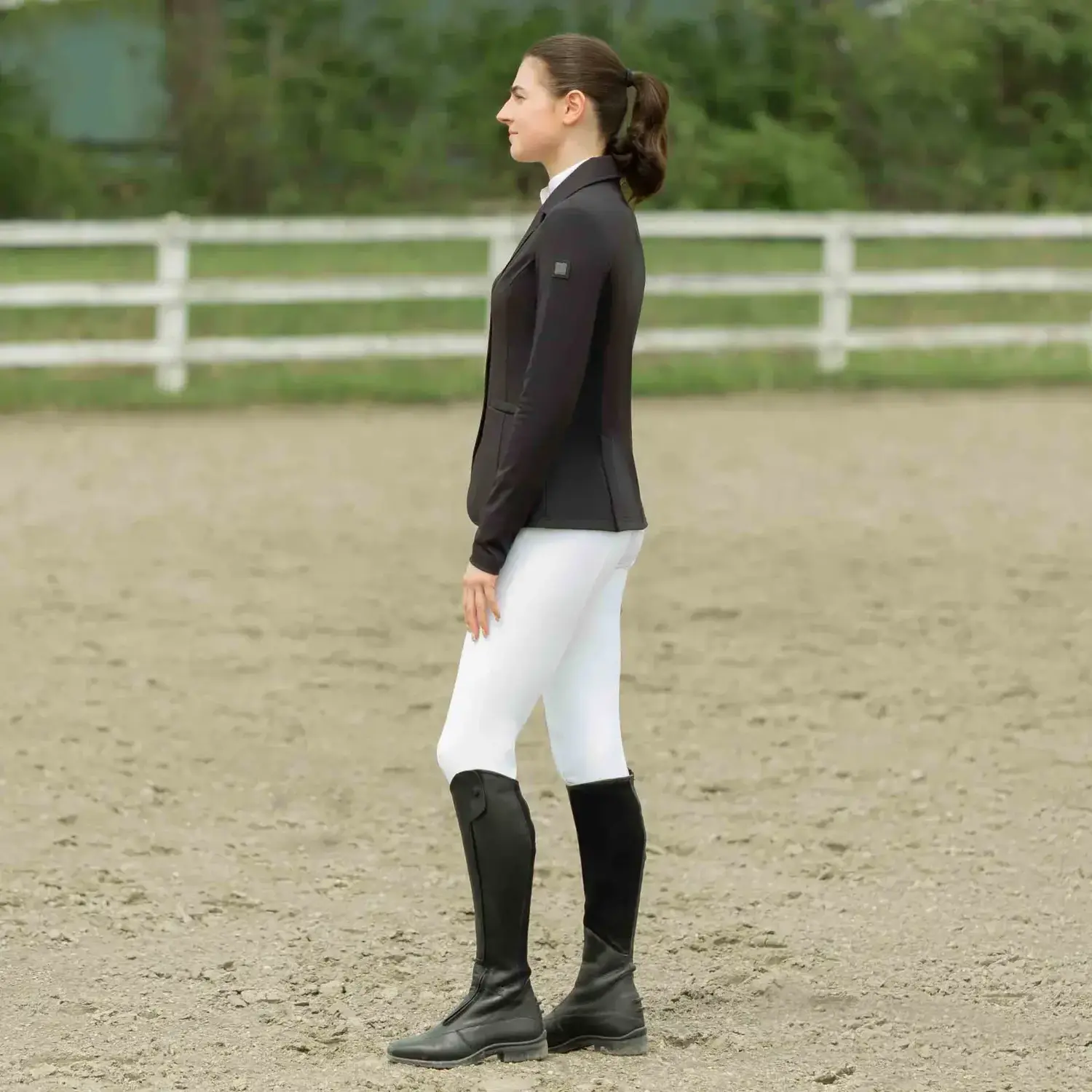 - Mid-rise fit, wider waistband, slightly higher in the back for in-saddle comfort, and silicone grip inside to keep shirt neatly tucked in