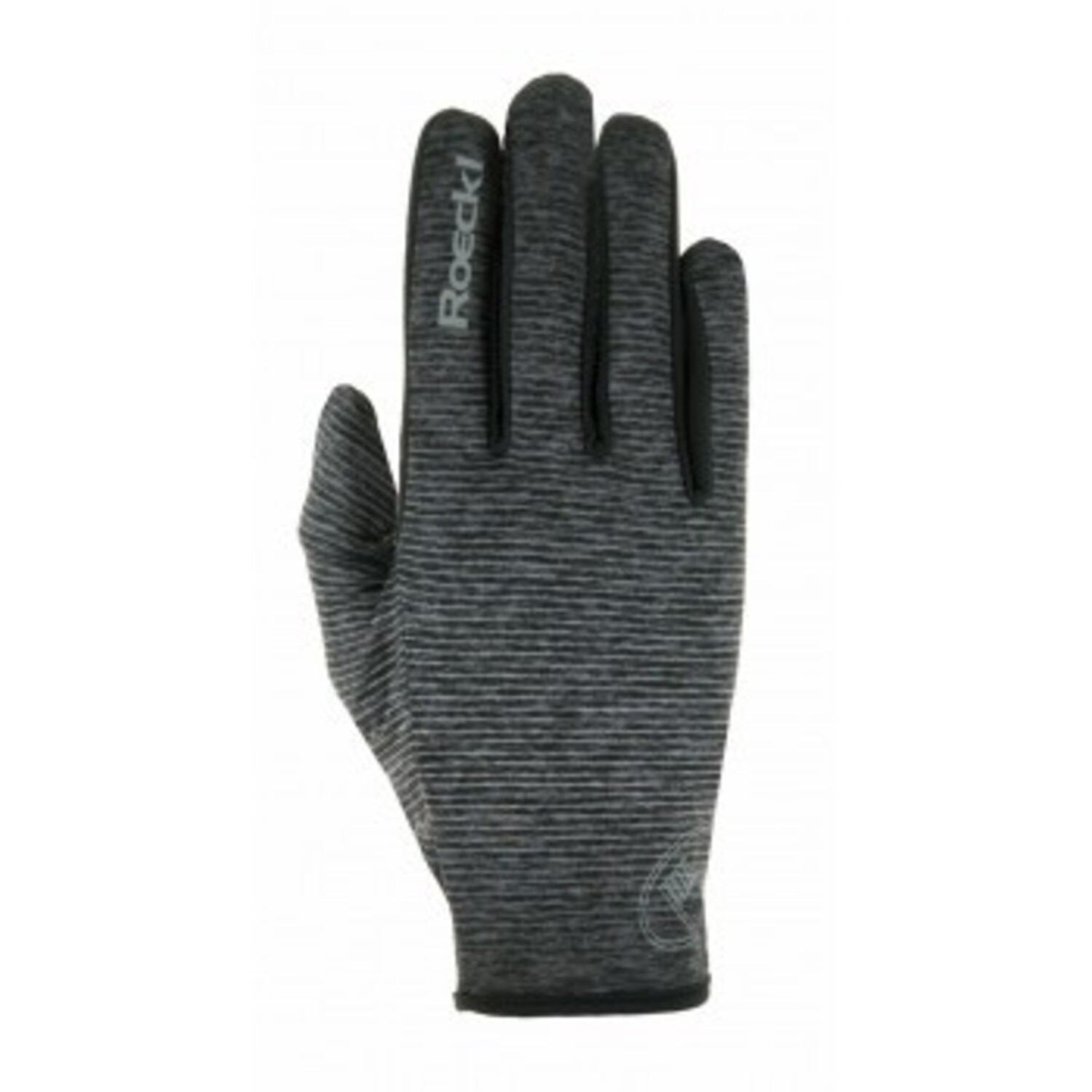 The delicately striped WAYNE bridges the gap between a sporty fashionable allrounder and the perfect groom glove in a stylish and cool way. This fall and winter glove is made from soft, highly elastic brushed Lycra material, which is napped on the inside providing a soft and snug fit. Almost all of the palm surface features silicone trimming for a non-slip grip of the leash, reins and all other equestrian equipment. Reflective design elements highlight the dynamic look. Machine-washable at 86 degrees Fahrenheit (30° Celsius). Note: ROECKL SPORTS does not recommend this model as a riding glove, but as a feelgood glove for walks with your horse or daily barn activities.