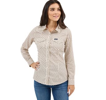 Woman's Retro Western Dress Snap Shirt - Mosaic White