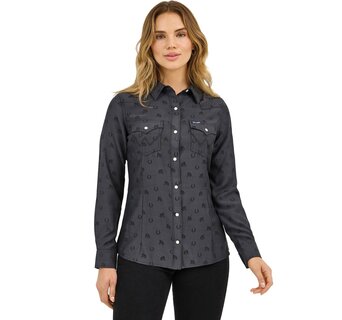 Retro Western Horseshoe Snap Shirt in Black