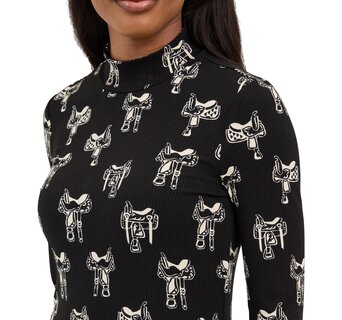 Women's Retro Punchy Mock Neck Knit - Saddle
