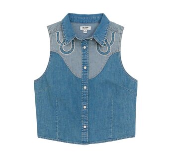 Woman's Retro Vintage Sleeveless Denim Snap Shirt - Light Denim