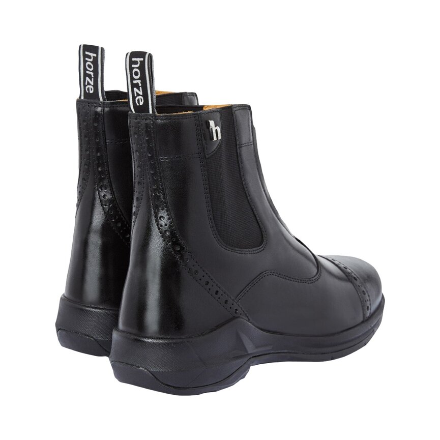 Sporty everyday jodhpur boots with classy details. These leather boots are decorated with a beautiful brogue detail on the toe cap and along the heel. For easy on and off, the boot has a sturdy black YKK front zipper, a logo pull tab and elastic inserts on both sides of the ankle. The outer elastic features a small patch with a metal 'h' logo. The Thinsulate lining of the foot part keeps your feet comfortable warm on cold spring days.