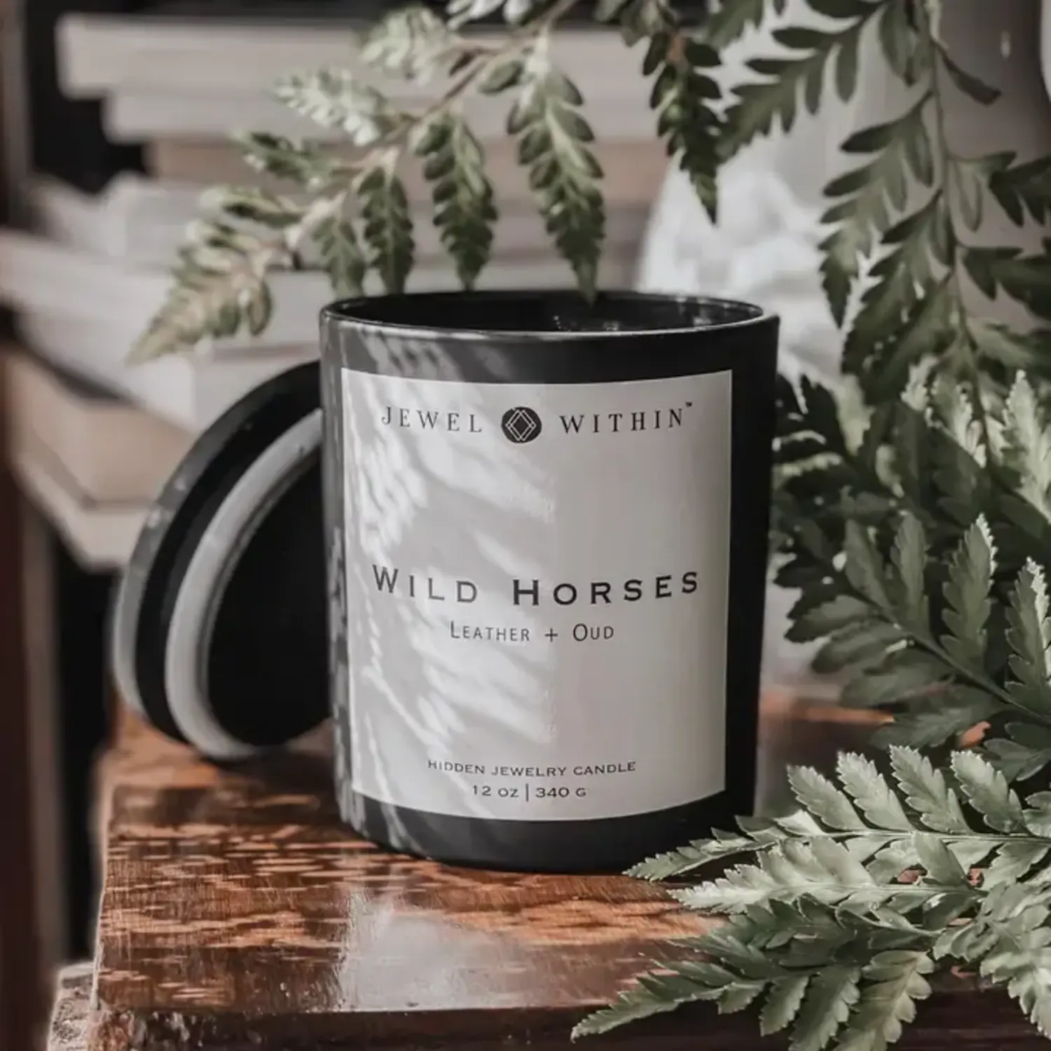 To further ignite your adventuresome spirit, we’ve hidden a 925 Sterling silver jewelry piece (earrings, or necklace, or bracelet or ring)in the ‘Wild Horses’ candle for you to discover and enjoy long after the candle has burned down.